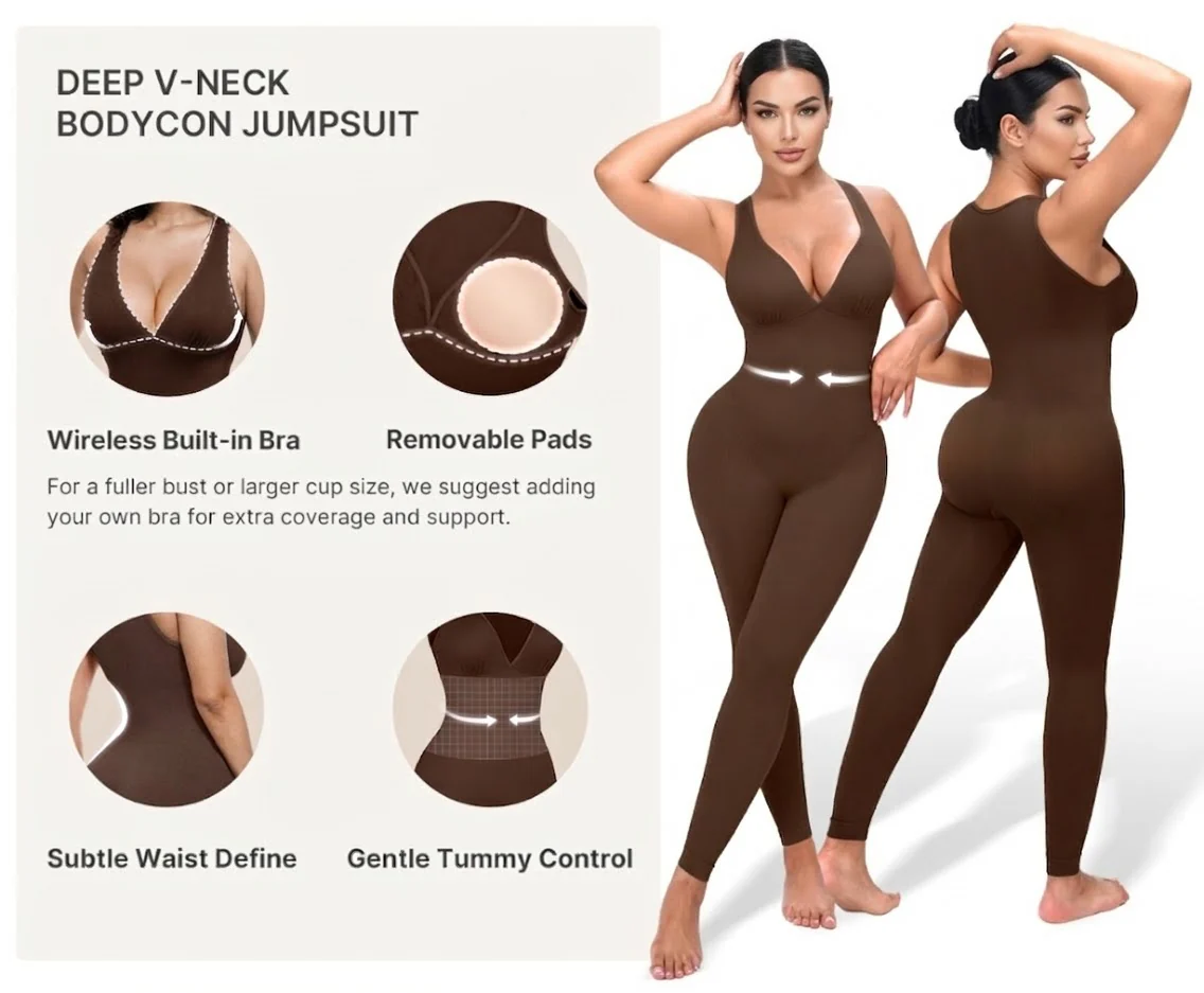 SCULPTED BODYCON ALLURE: Featuring a higher-density weave at the waist for targeted shaping, it delivers gentle compression to smooth your midsection with light tummy control. Complemented by a sultry deep V-neck and stretchy bodycon fit, it hugs your shape to highlight natural curves. You’ll love your polished look—confidence shines through!