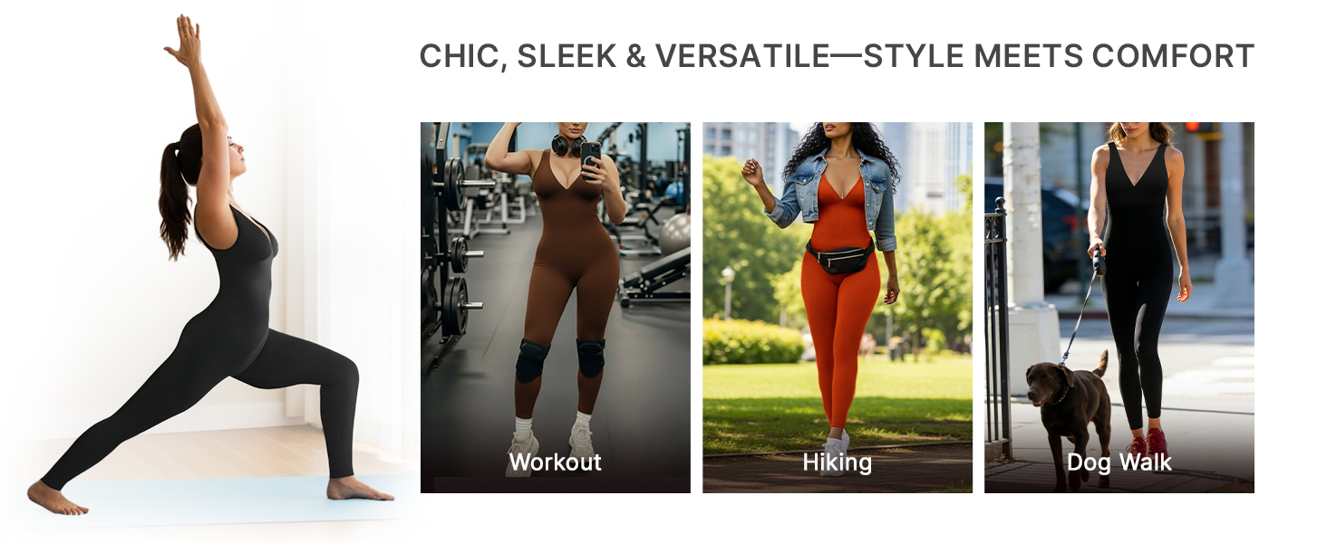 ONE-PIECE VERSATILITY: Wear it alone in summer or layer it with your favorite jacket during other seasons—this one-piece fits every occasion. Whether you’re hitting the gym, traveling, running errands, shopping, or practicing yoga and Pilates, it has you covered. Sleek and convenient, it’s ready whenever you are—an ideal choice for those who value ease without compromising style.