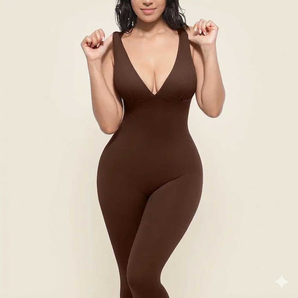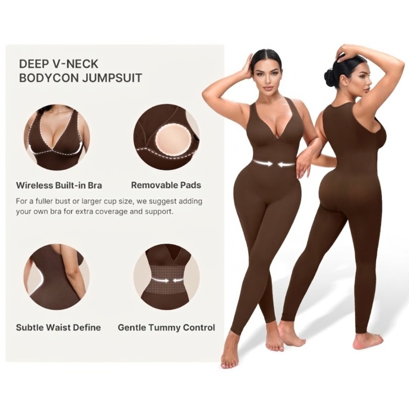 Deep V Shapewear With Chest Support Breathable High-Waisted Tummy Control Jumpsuit
