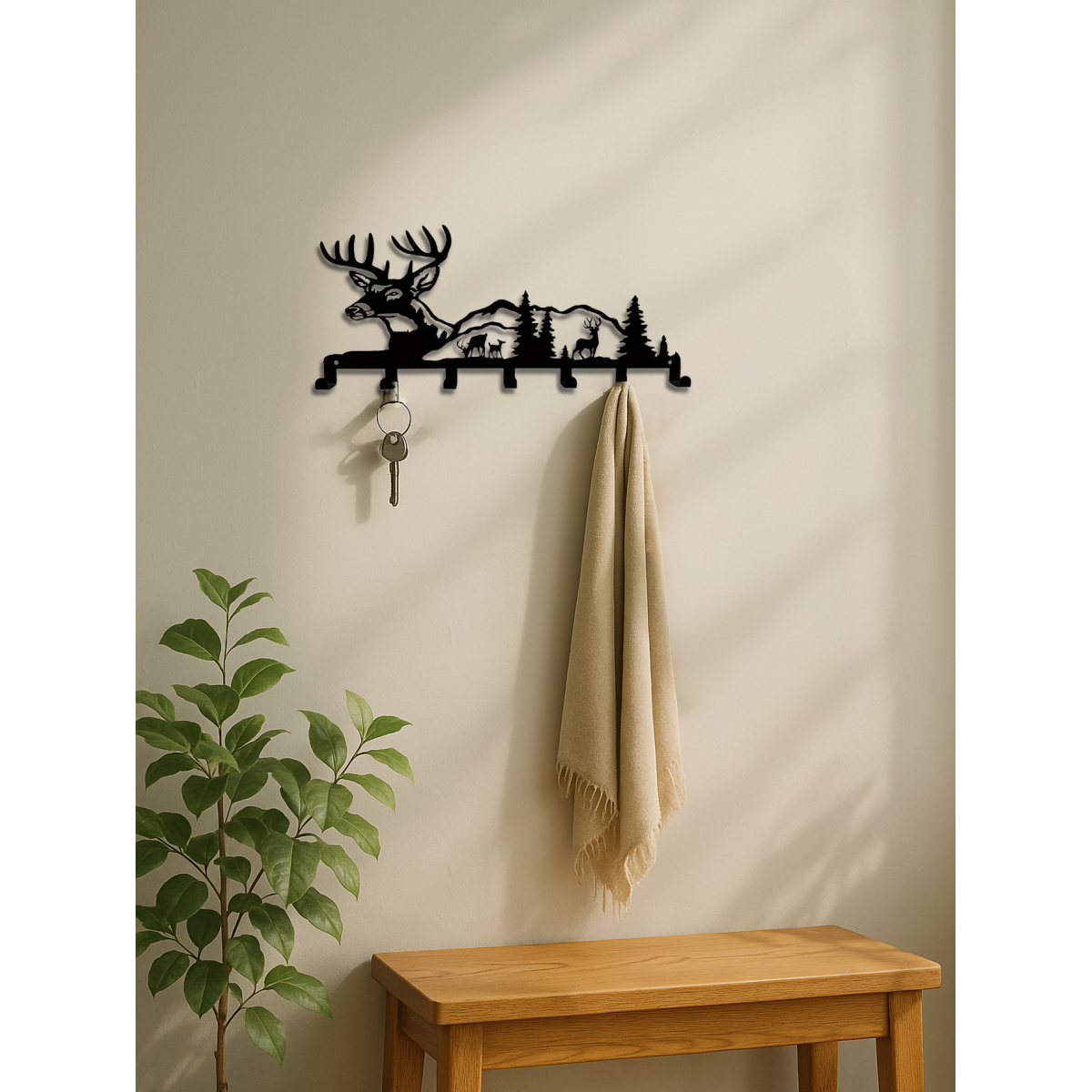 Deer And Forest Metal Key Hook - Single-piece Stylish Wall-mounted Organizer, Effortlessly Installable for Entryway, Ideal Nature-themed Gift for Enthusiasts, Utility Hooks for Keys Accessories Wall Sculptures