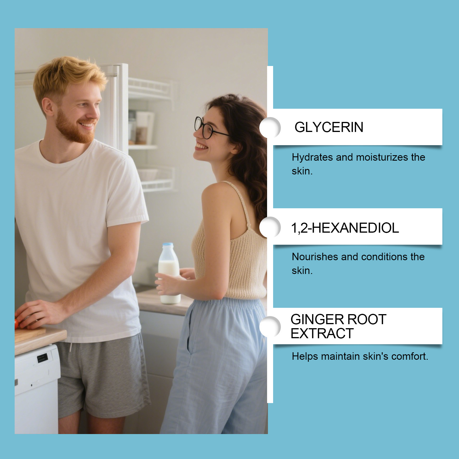 Ingredients: water, glycerin, 1,2- hexanediol, carbomer, arginine, allantoin, vanillin butyl ether, ginger root extract.