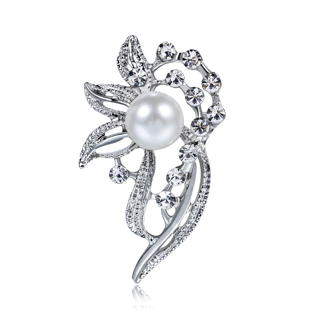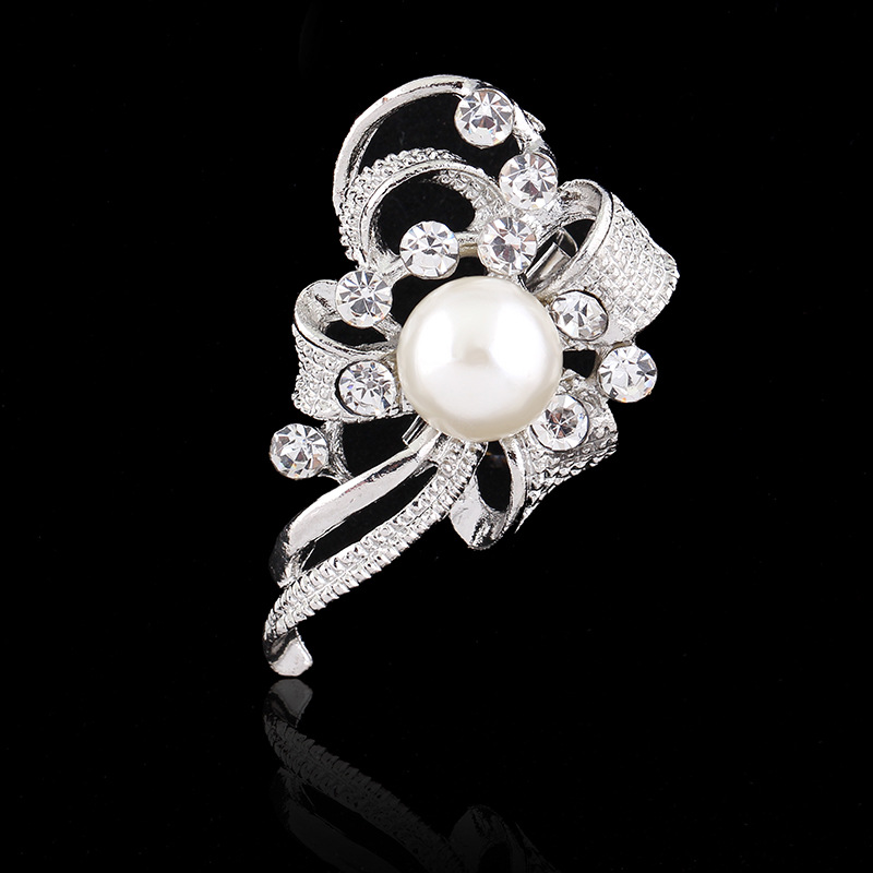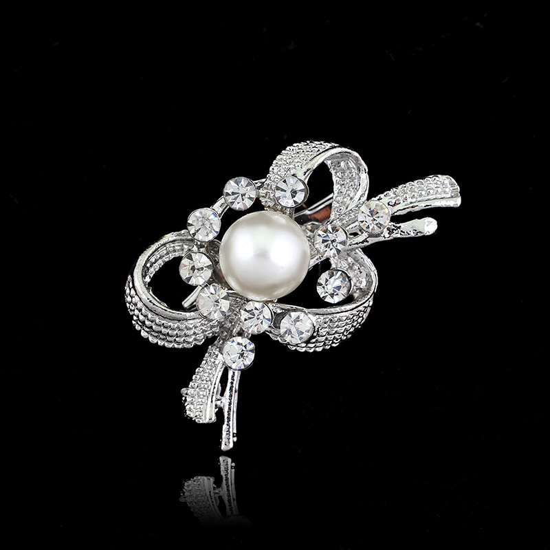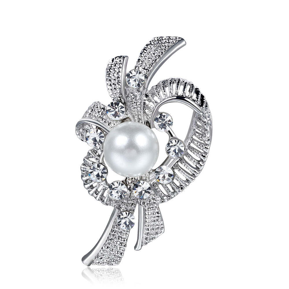 Delicate Pearl And Diamond Shawl Buckle Pin