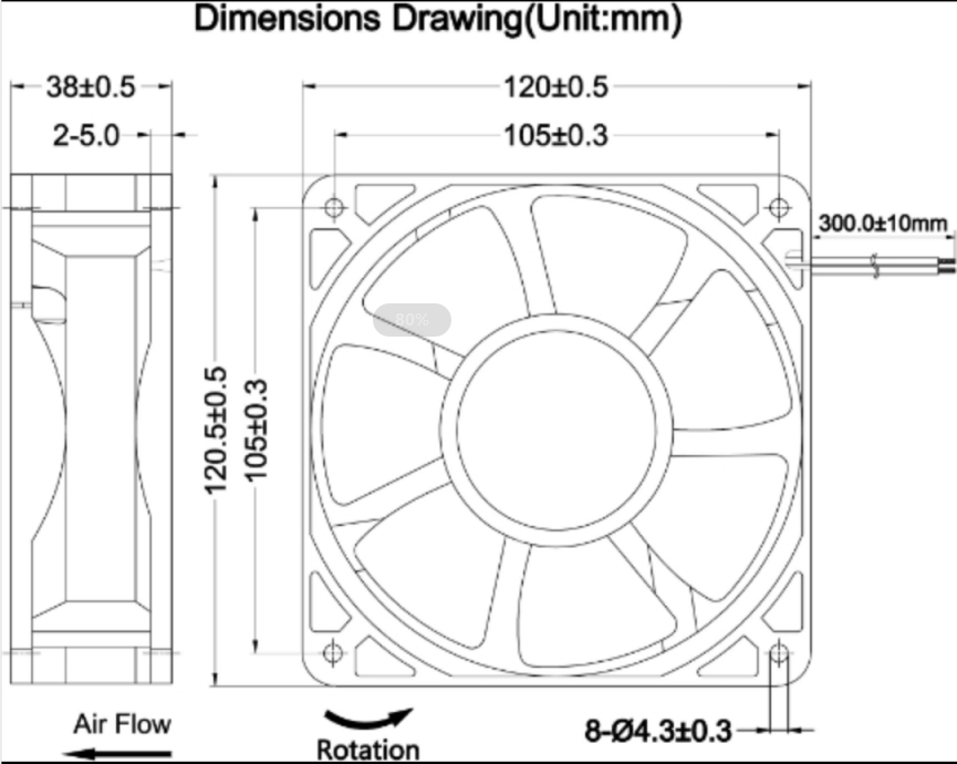 Fan rotation direction: counterclockwise when viewed from the direction of the fan blades;