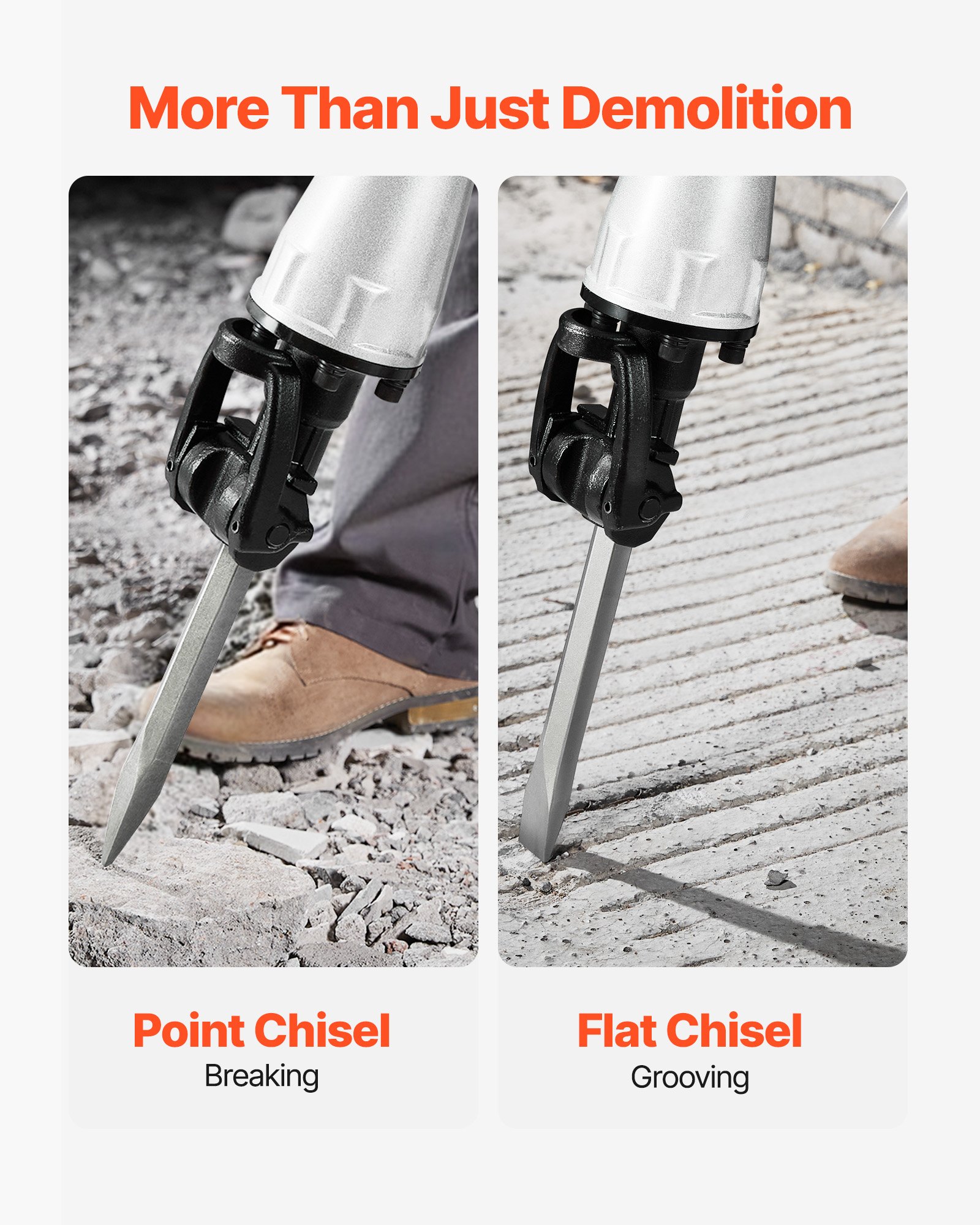 Easy to Control: The T-shaped handle design provides a stable grip, ensuring better control during operation. Coupled with triple shock-absorption technology, the jack hammer reduces vibration transfer, significantly minimizing hand fatigue