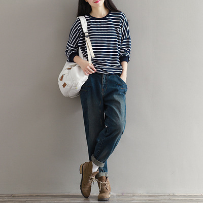 Denim Baggy Pants Ankle-tied Large Size Loose Casual Harem Pants For Women