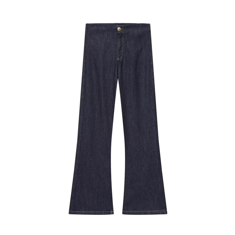 Denim Bustier Top With Belt And High-waisted Wide-leg Jeans