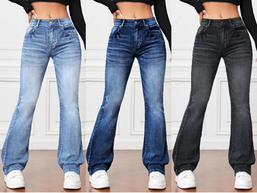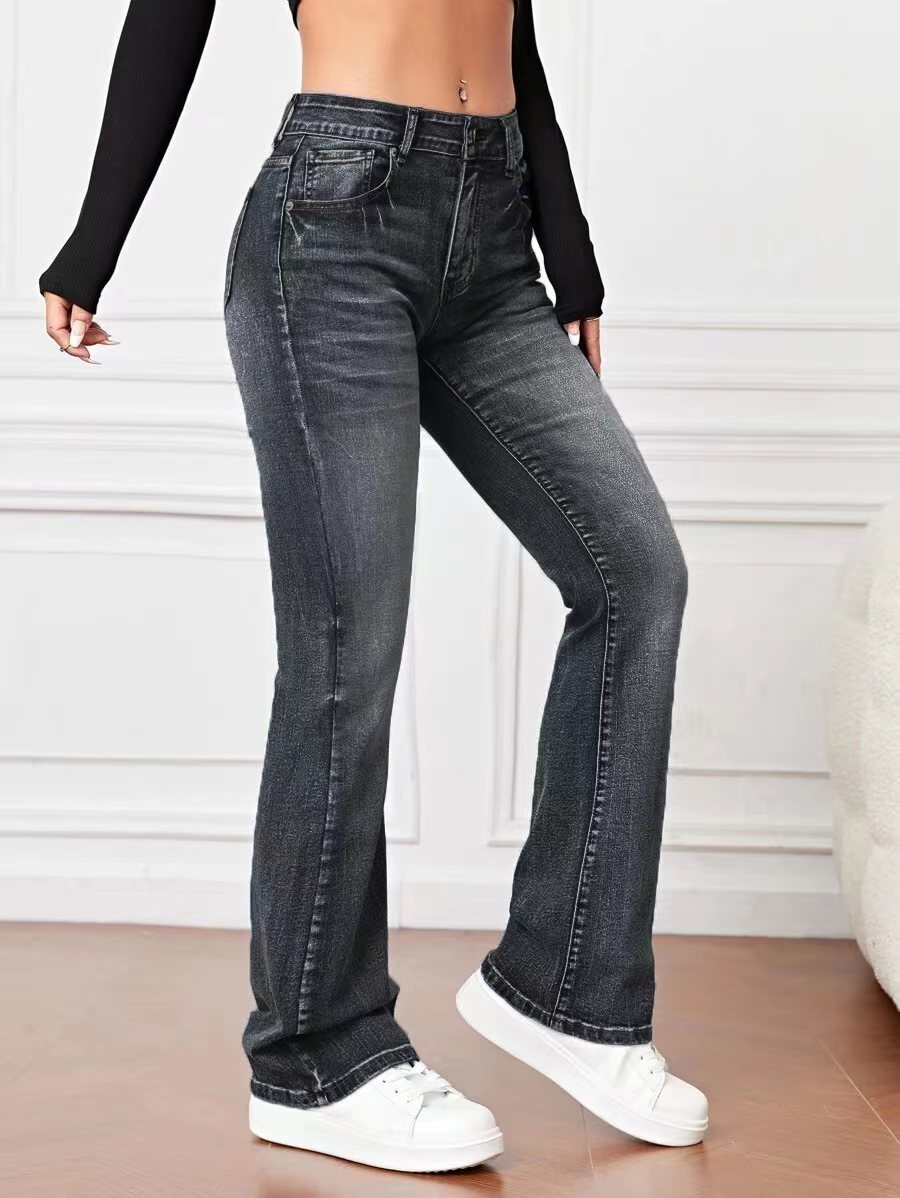 Denim High Waist Loose And Slimming Bootcut Trousers