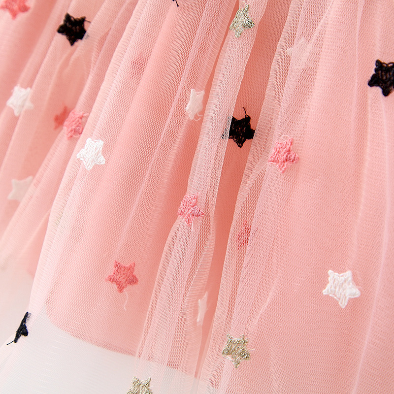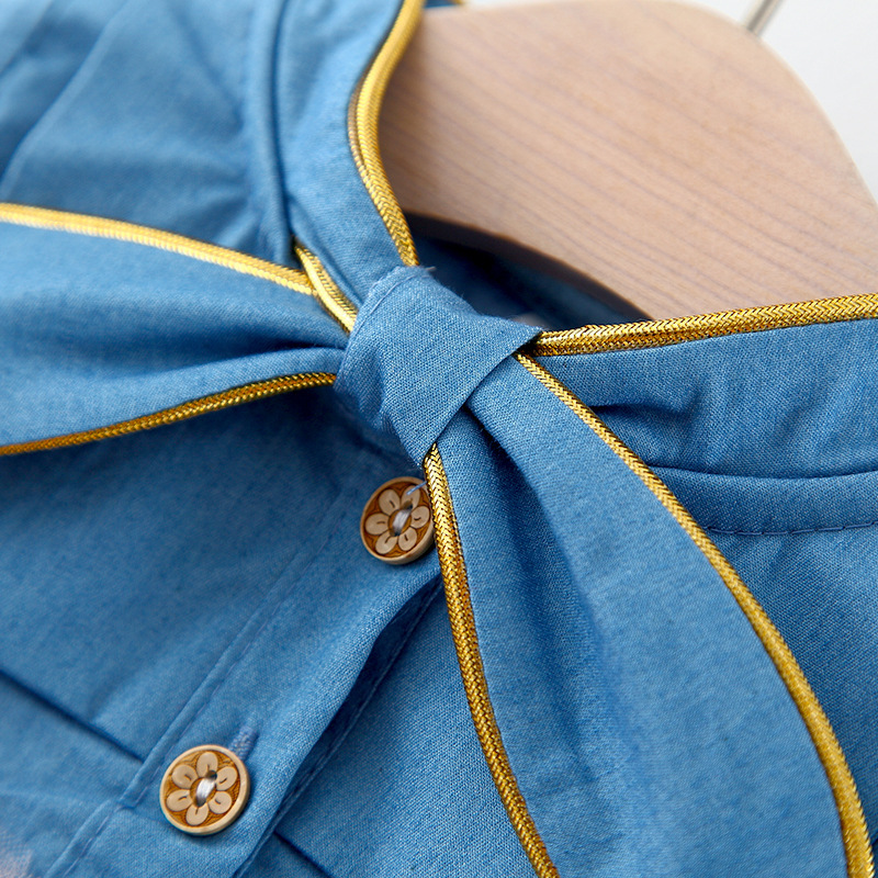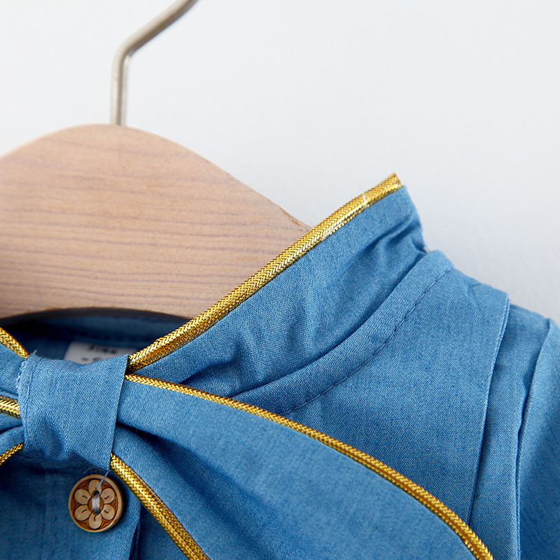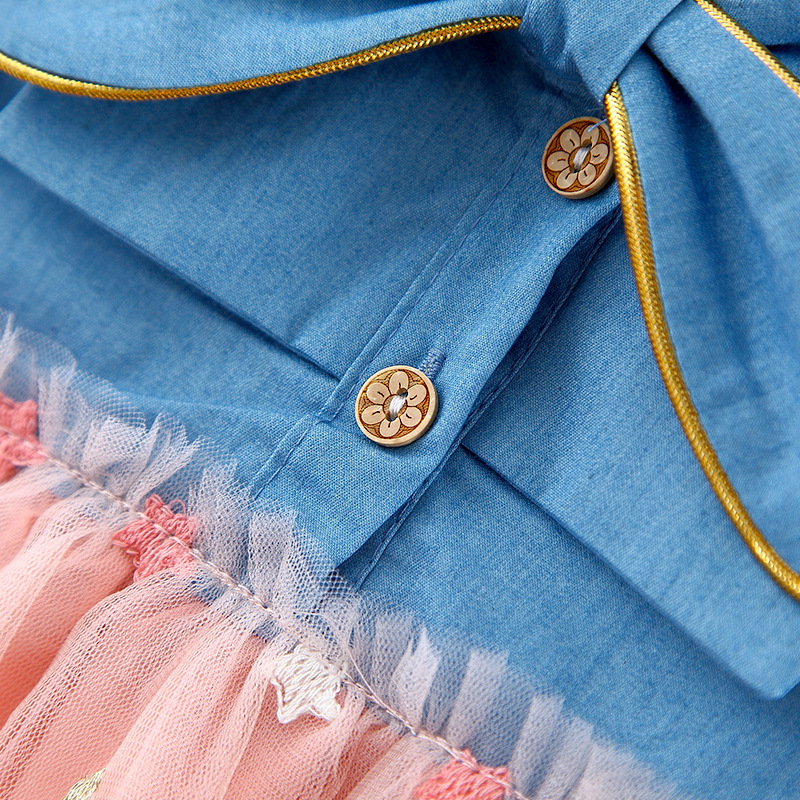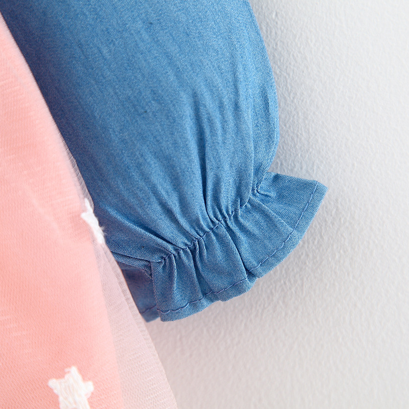 Denim Mesh Stitching Long Sleeves Princess Dress