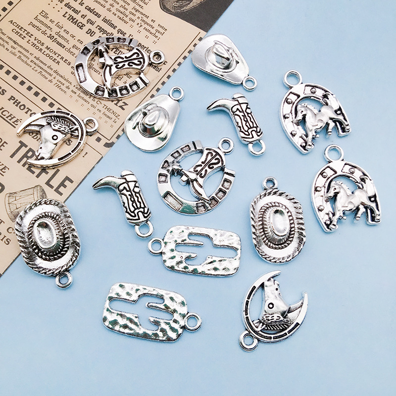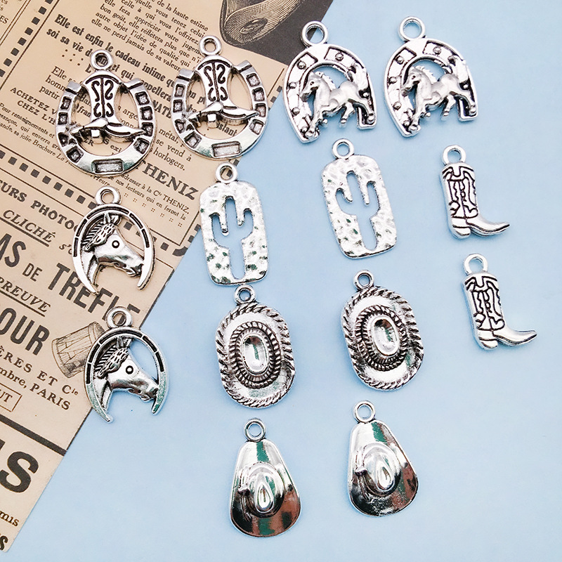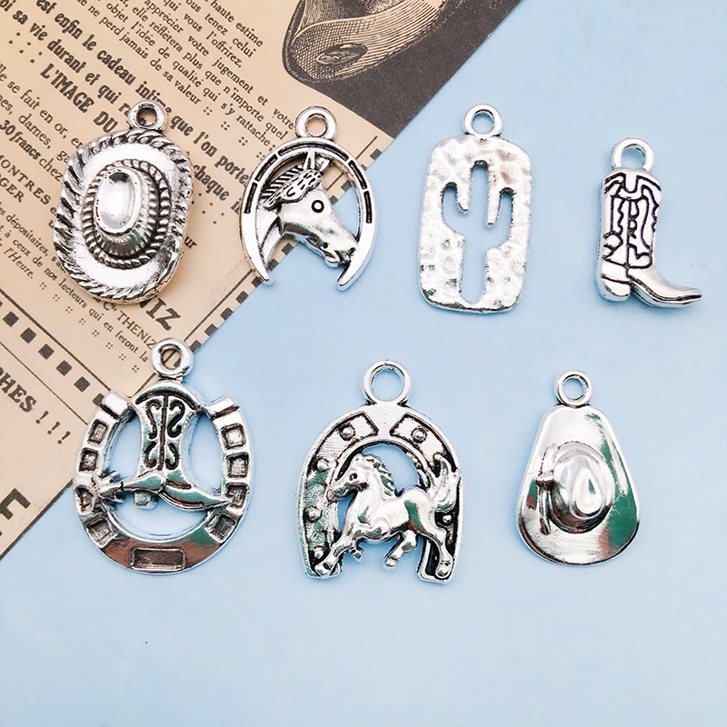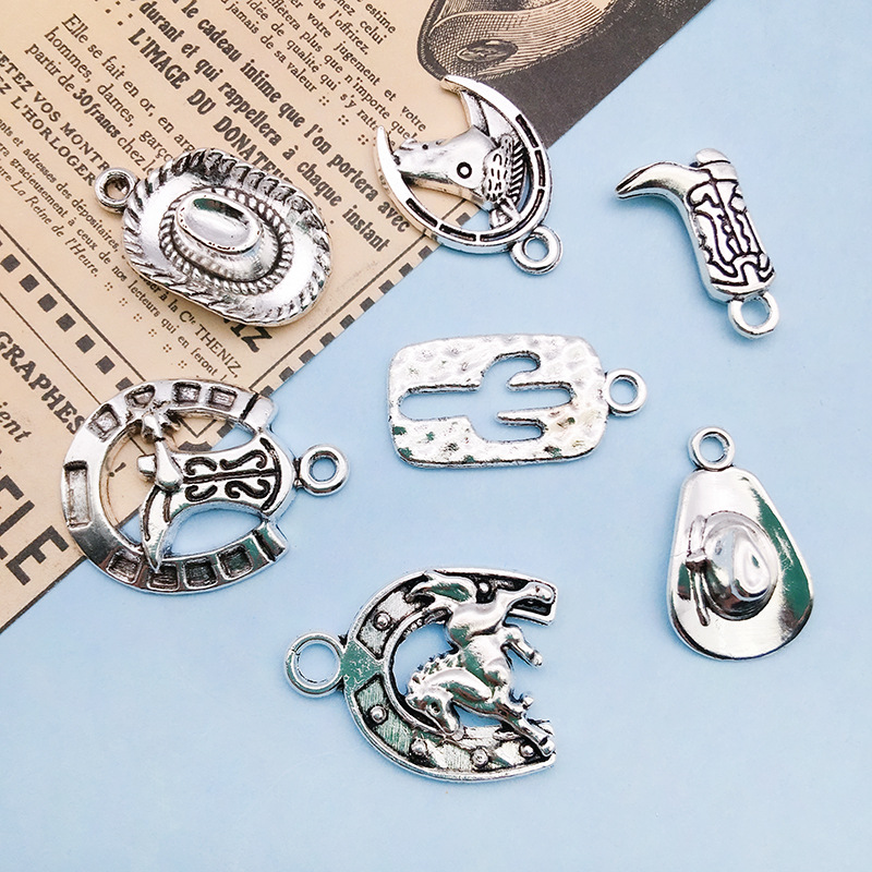 Color: 1 Ancient Silver Cactus 12x23mm-14028/1.3g, 1 Ancient Silver Western Cowboy Hat 12x20mm-14029/1.5g, 1 Ancient Silver Western Horse 17.5x23mm-14030/2.3g, 1 Ancient Silver Horse 15x19mm-14032/1.6g, 1 Ancient Silver Horse Boot 11x19mm-14033/1.7g, 1 Ancient Silver Horse Boot 19x24mm-14034/1.9g, 1 Ancient Silver Western Cowboy Hat 13.5x22.5mm-14035/2.8g