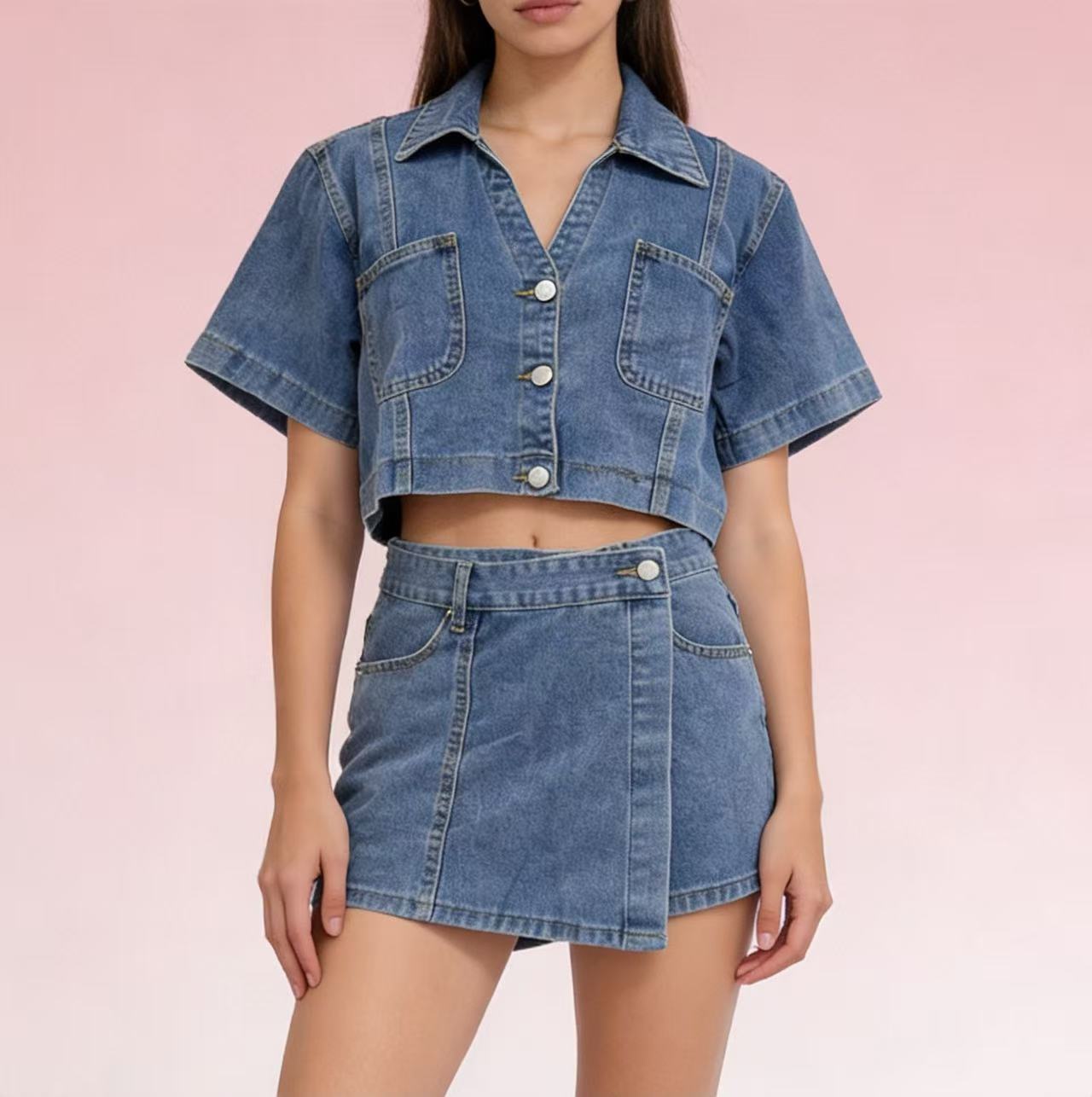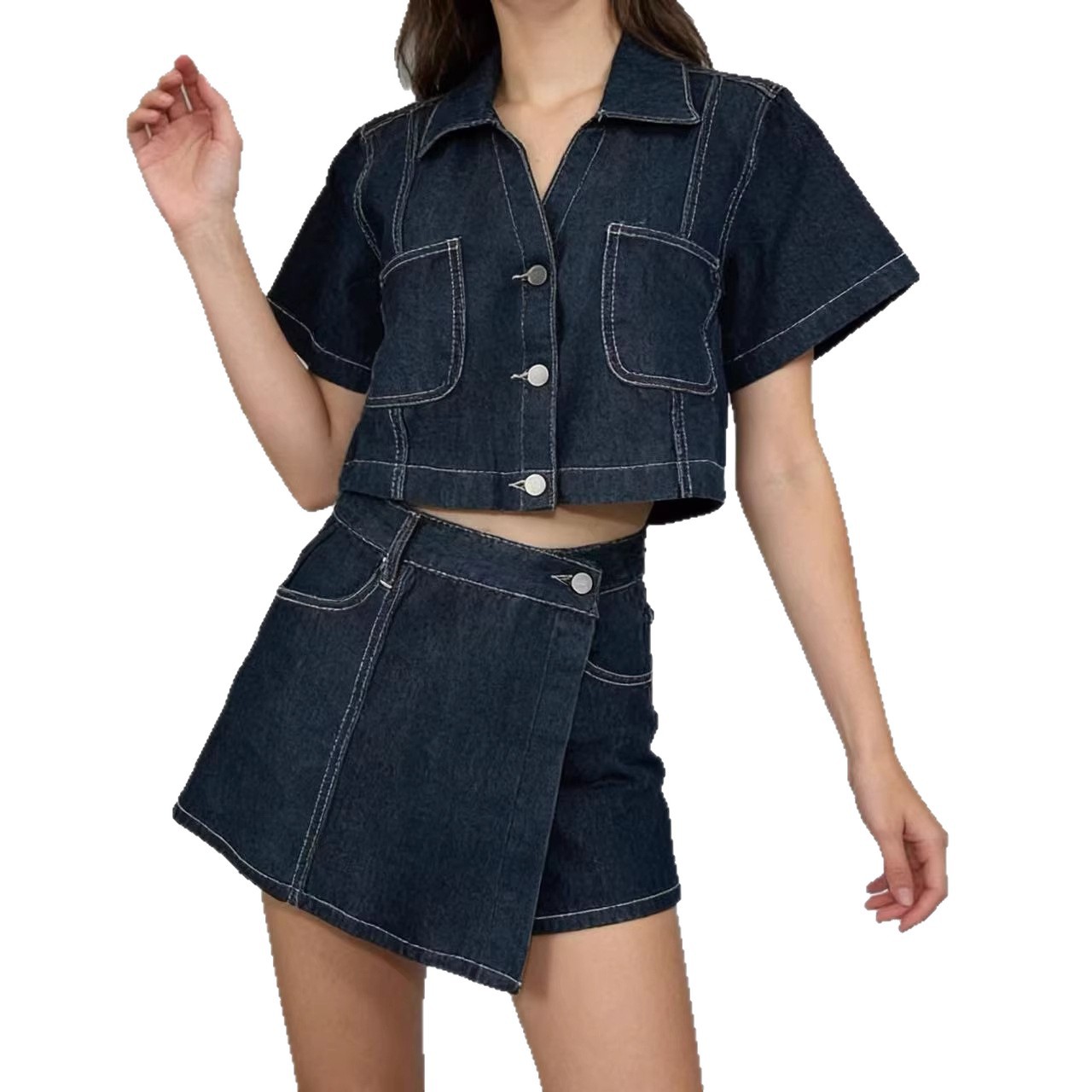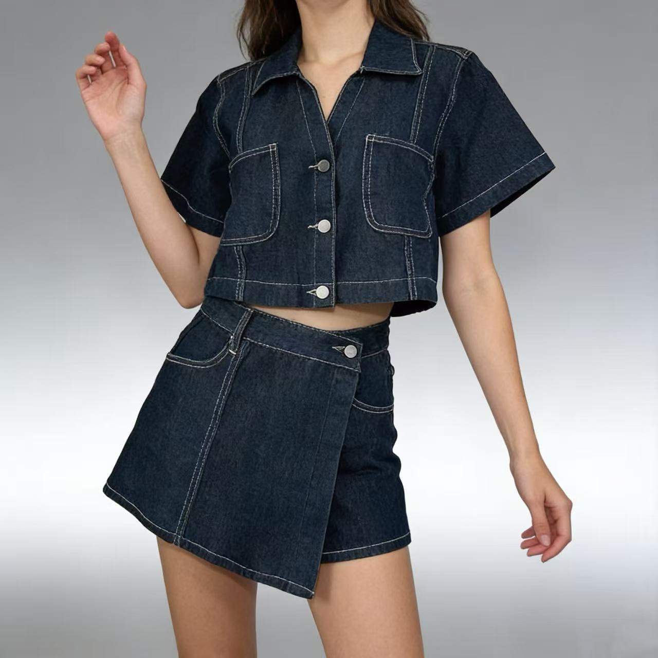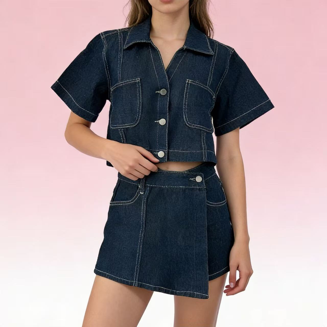 Denim Shirt And Skort Set Stylish Two-Piece Summer Loose And Comfortable Denim Outfit