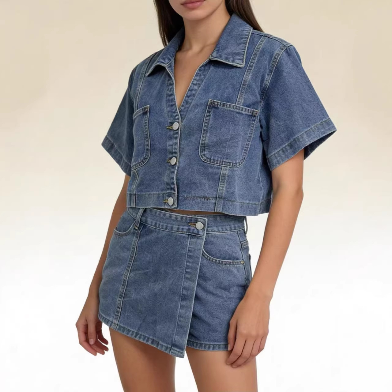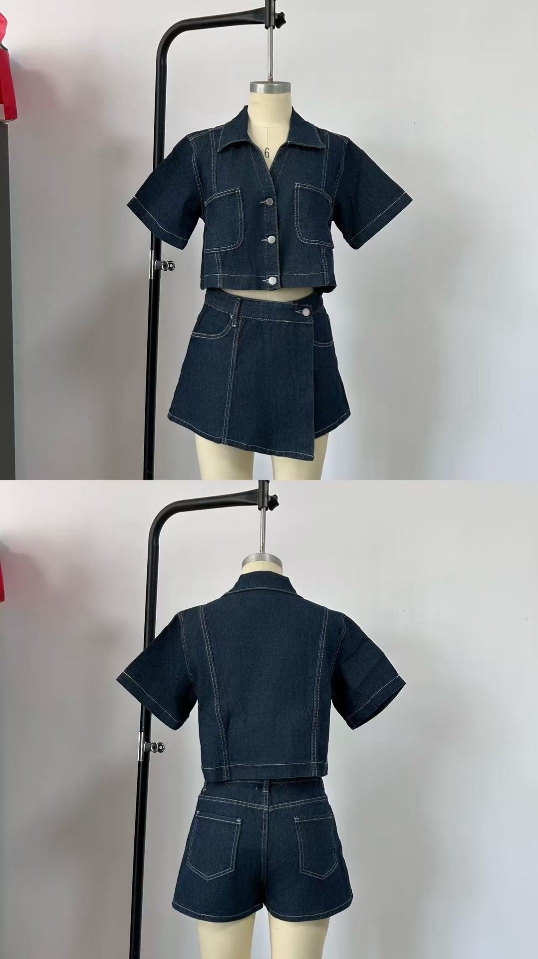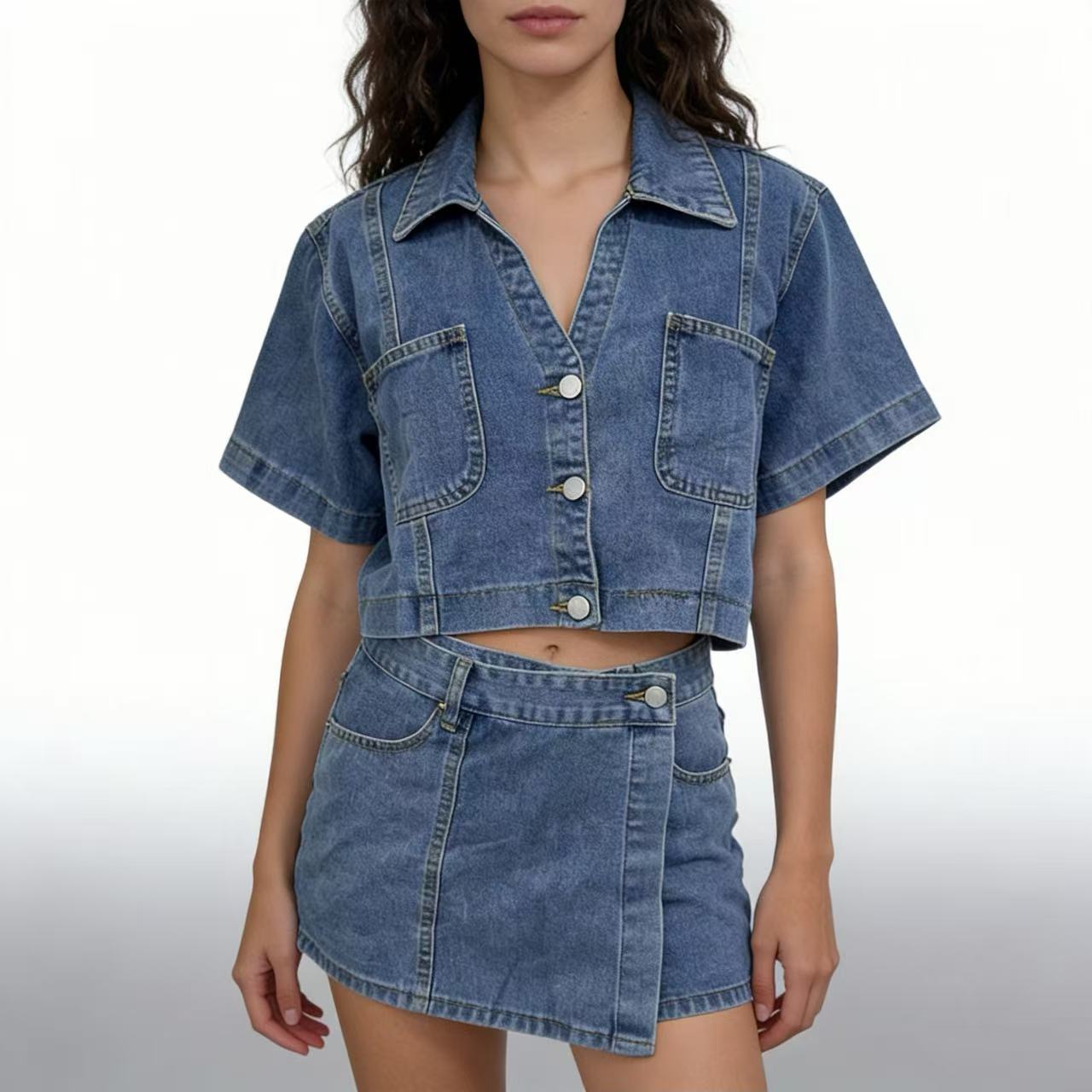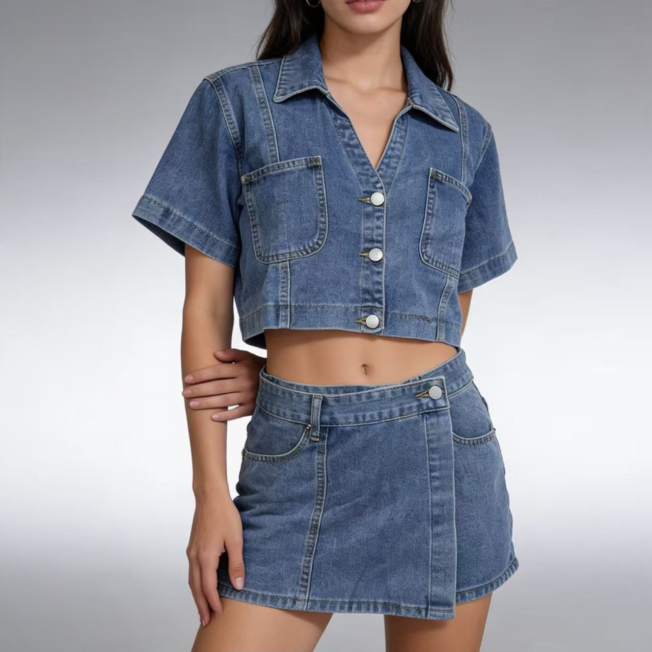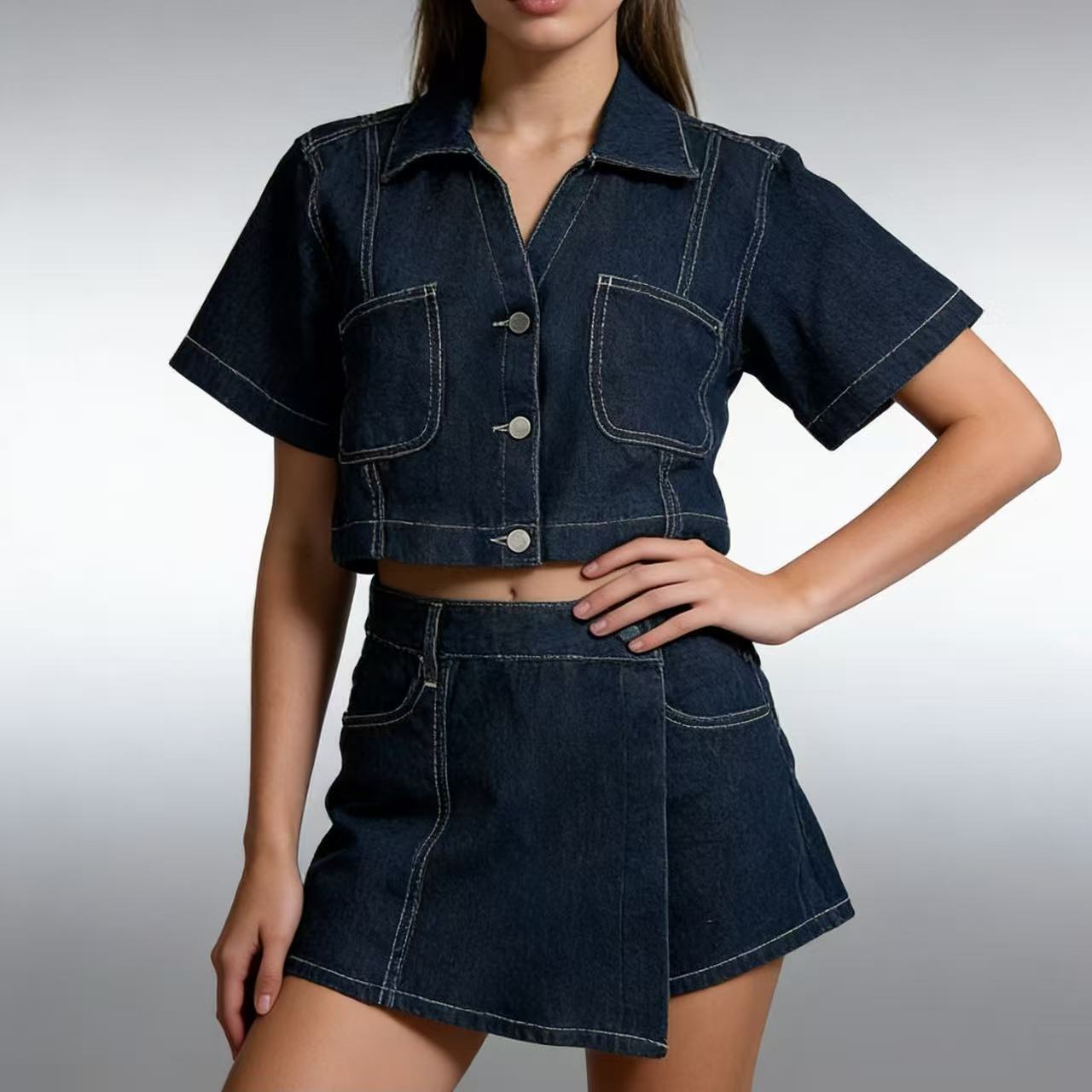 Denim Shirt And Skort Set Stylish Two-Piece Summer Loose And Comfortable Denim Outfit