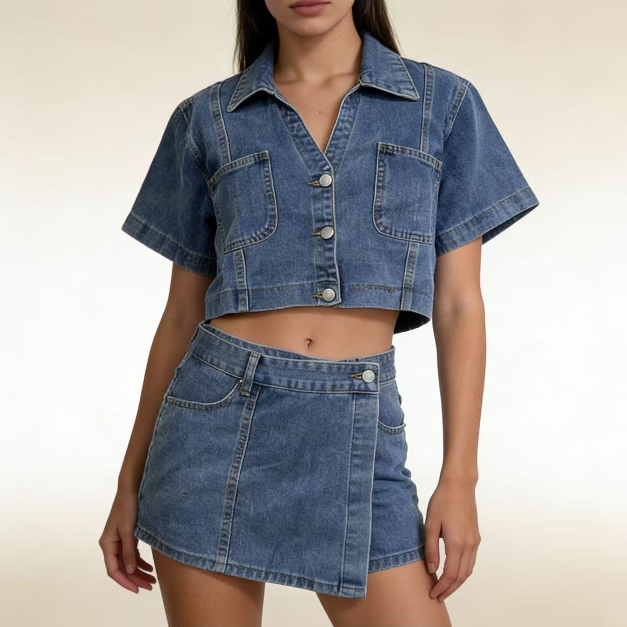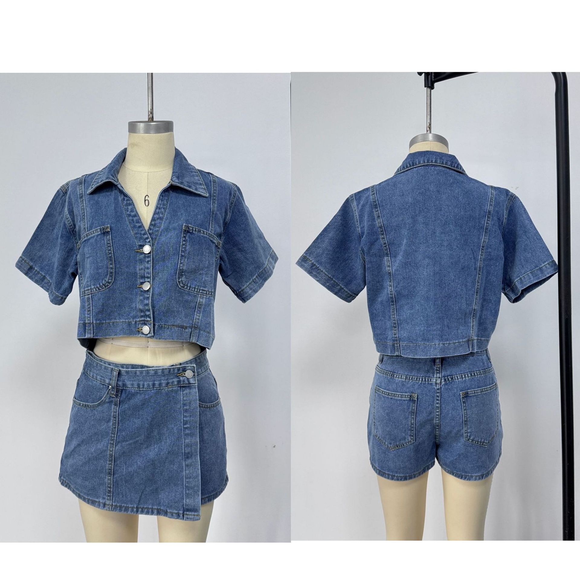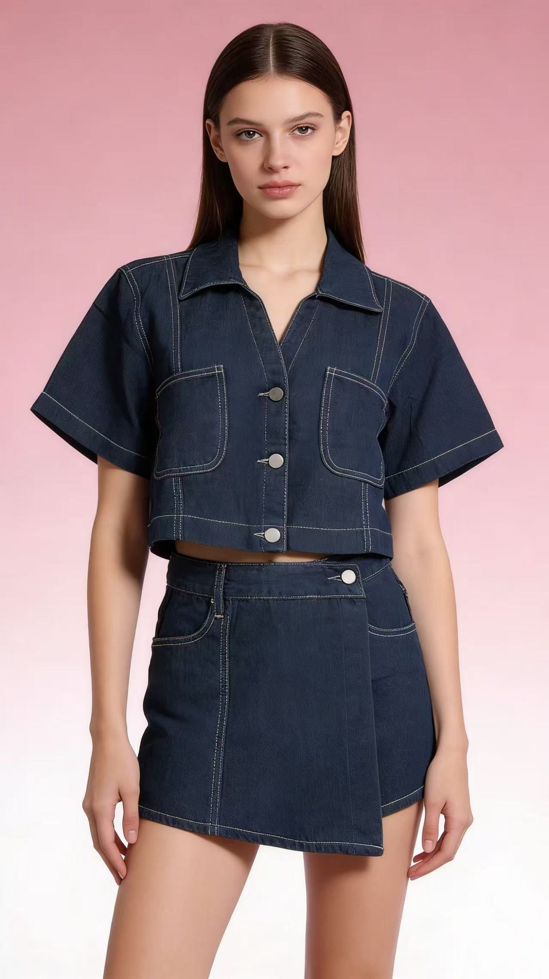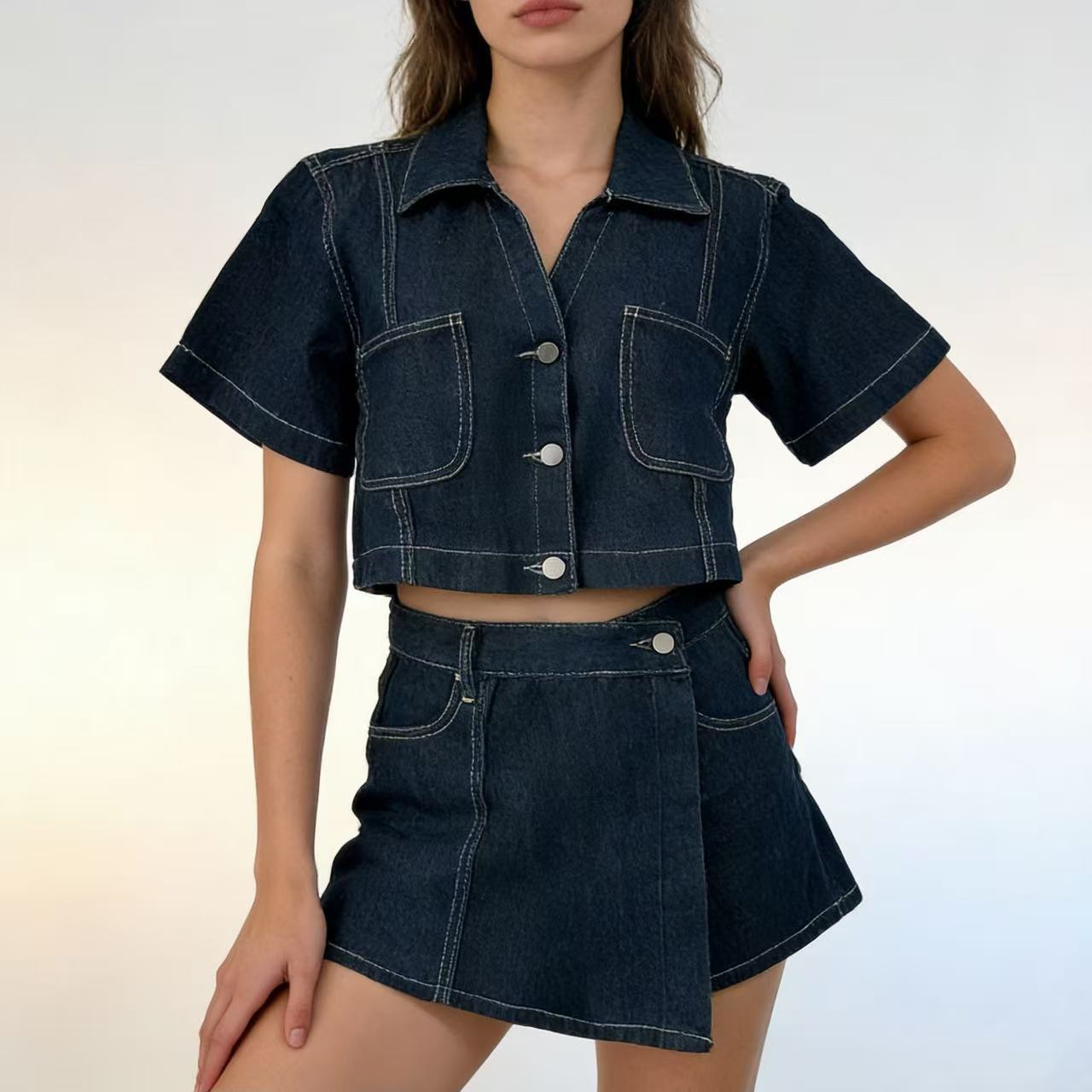 Denim Shirt And Skort Set Stylish Two-Piece Summer Loose And Comfortable Denim Outfit