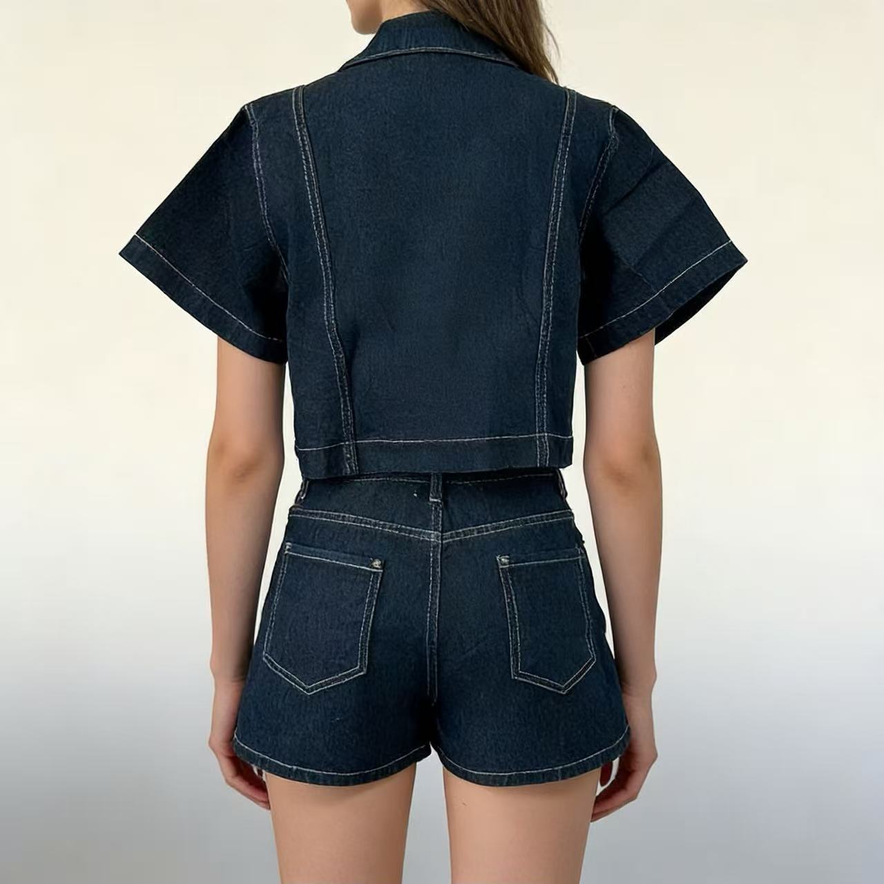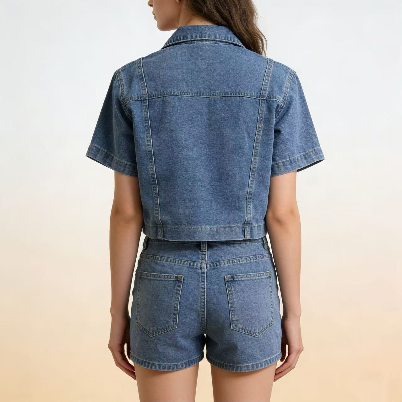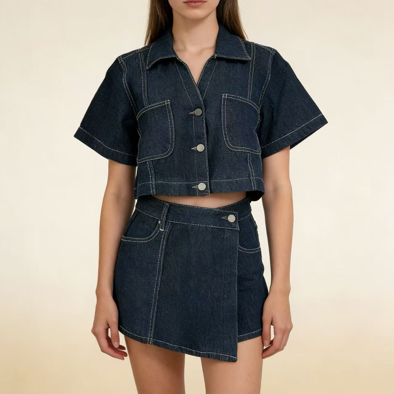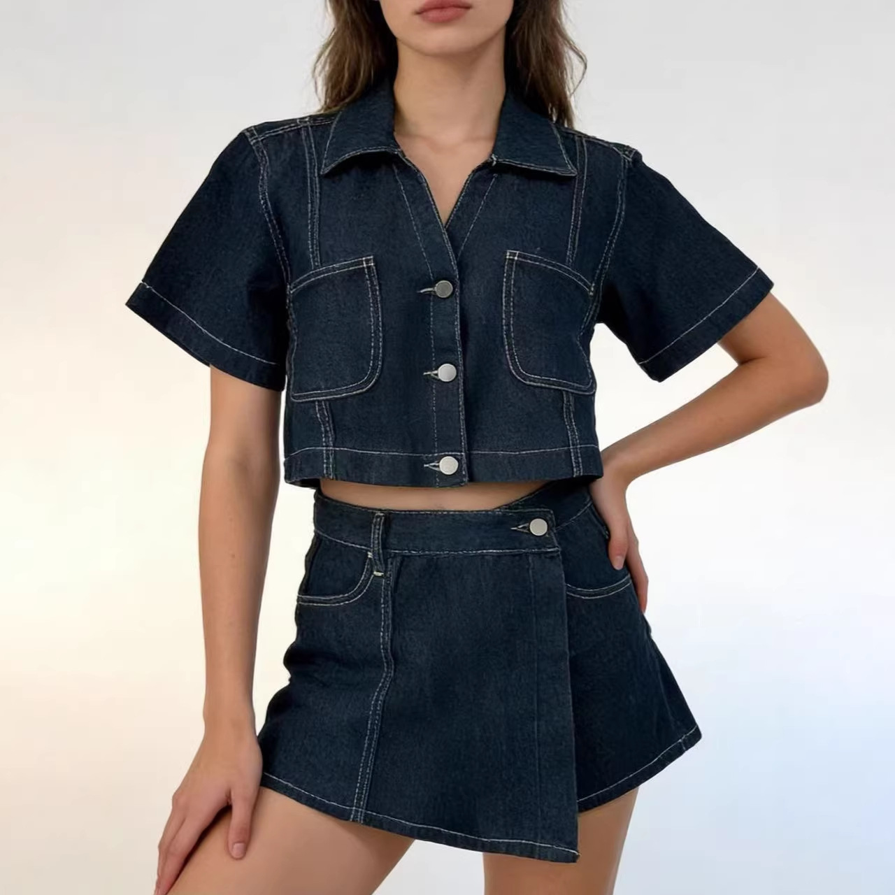 Denim Shirt And Skort Set Stylish Two-Piece Summer Loose And Comfortable Denim Outfit