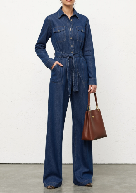 Denim Tie Long Sleeve Jumpsuit
