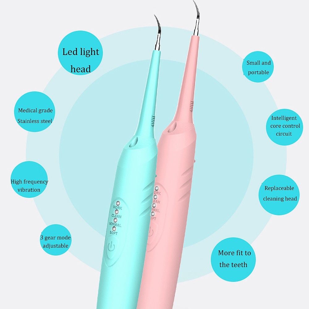 Ultrasonic technology, 30,000 high-intensity frequencies per minute, effectively breaks stubborn tartar and reduces enamel and chewing gum damage, which may be caused by manual dental surgery