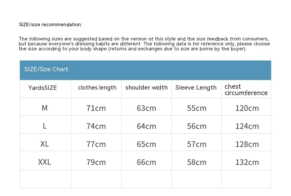 1. Asian sizes are 1 to 2 sizes smaller than European and American people. Choose the larger size if your size between two sizes. Please allow 2-3cm differences due to manual measurement. 2. Please check the size chart carefully before you buy the item, if you don't know how to choose size, please contact our customer service. 3.As you know, the different computers display colors differently, the color of the actual item may vary slightly from the following images.