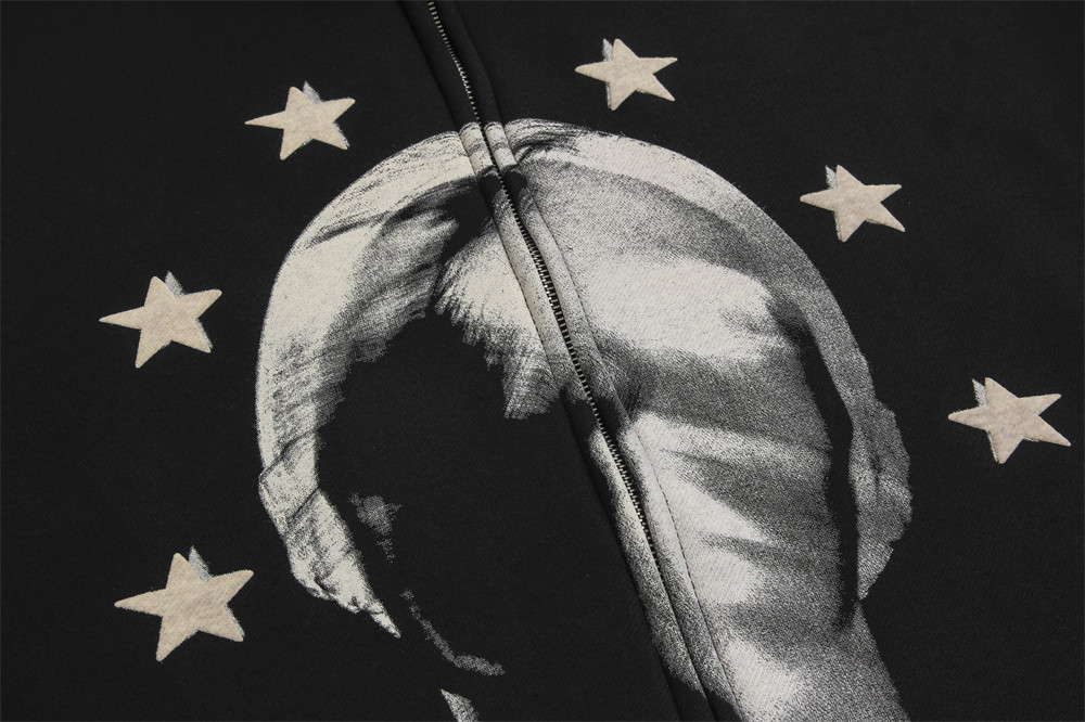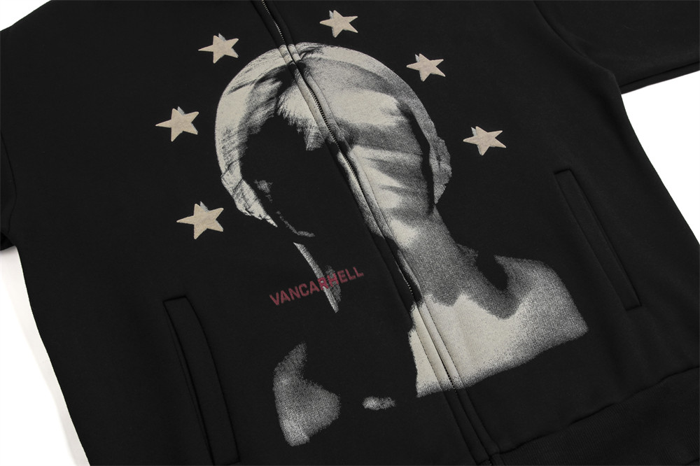 Depressed Abstract Printing Fleece Cardigan Sweater