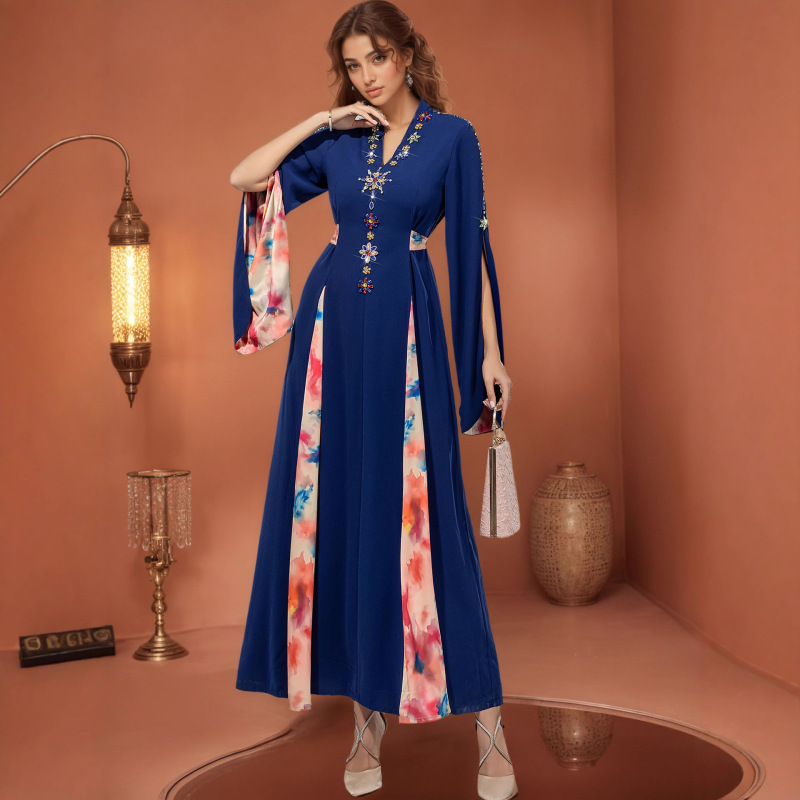 Desert Starry Sky Dark Blue Gown Hand-Inlaid