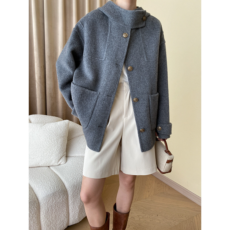 Design Cape Hooded Double-faced Woolen Goods Wool Overcoat