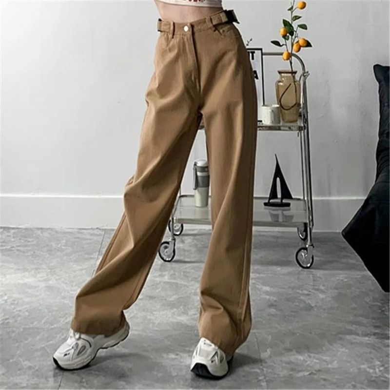 Design Personality Adjustable Buckle Straight-leg Pants Women's Loose