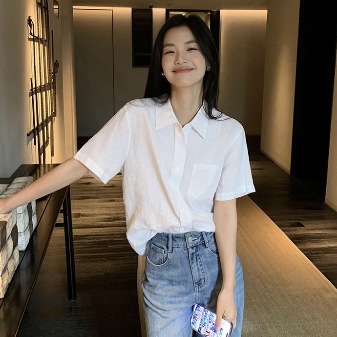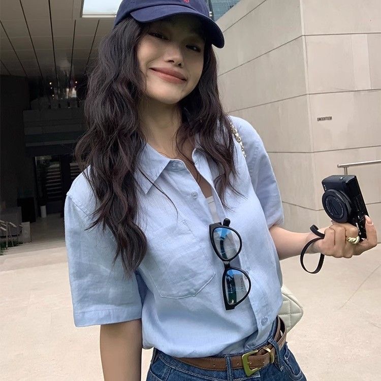 Color: white short sleeve shirt, blue short-sleeved shirt
