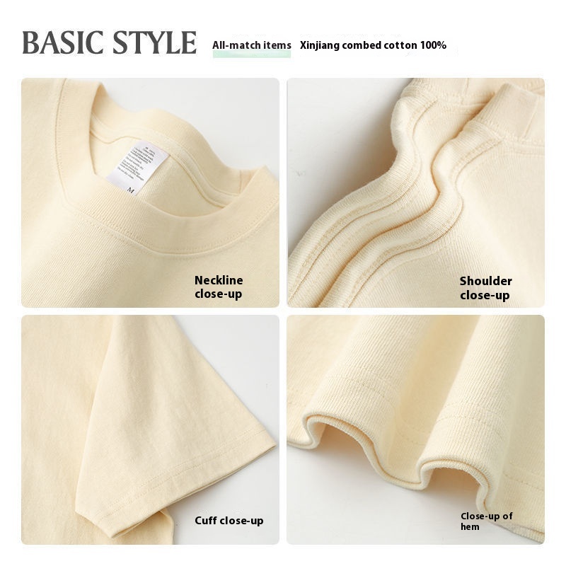 Design Sense Apricot Loose Versatile Half-length Sleeve Top Women