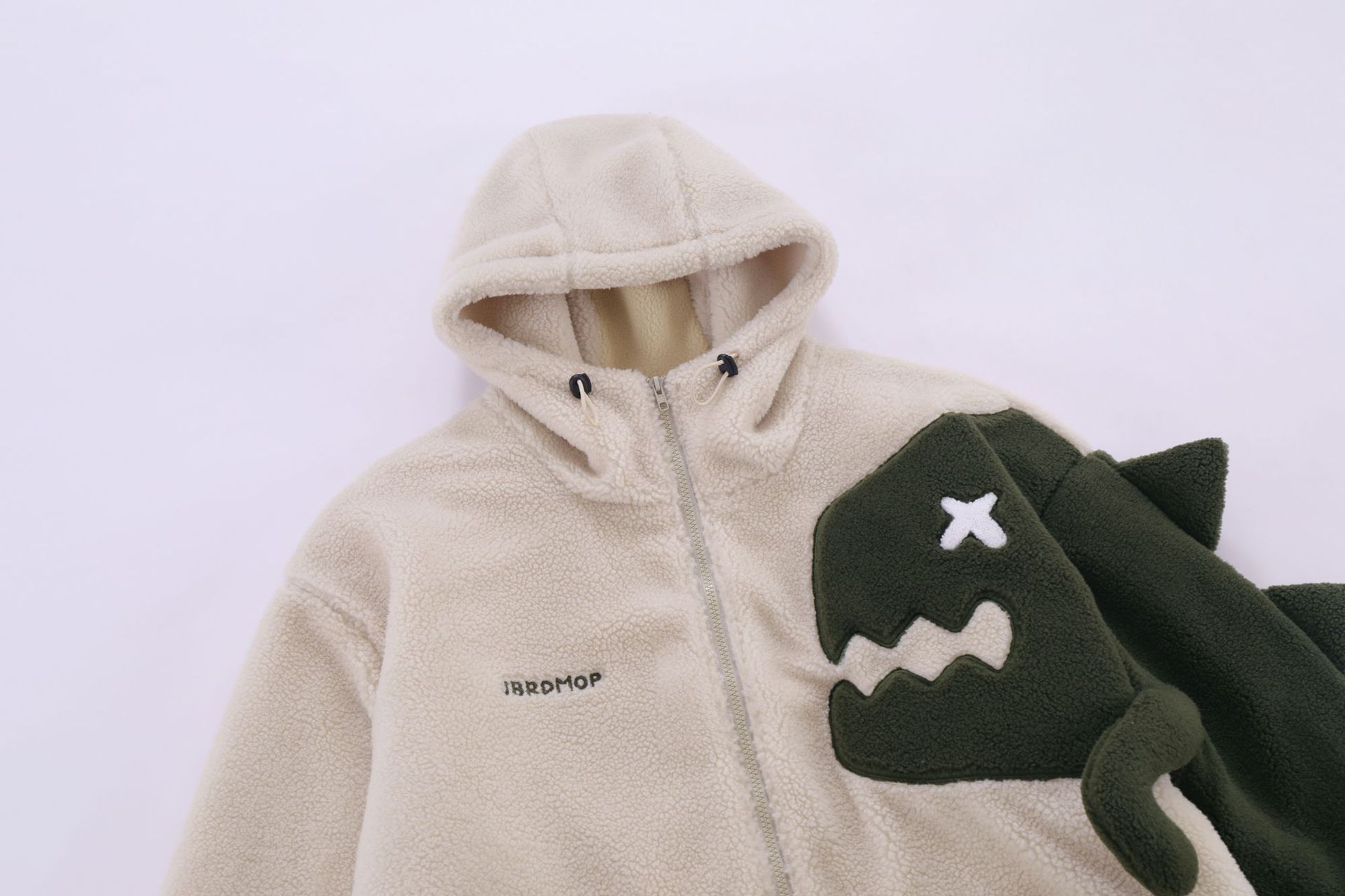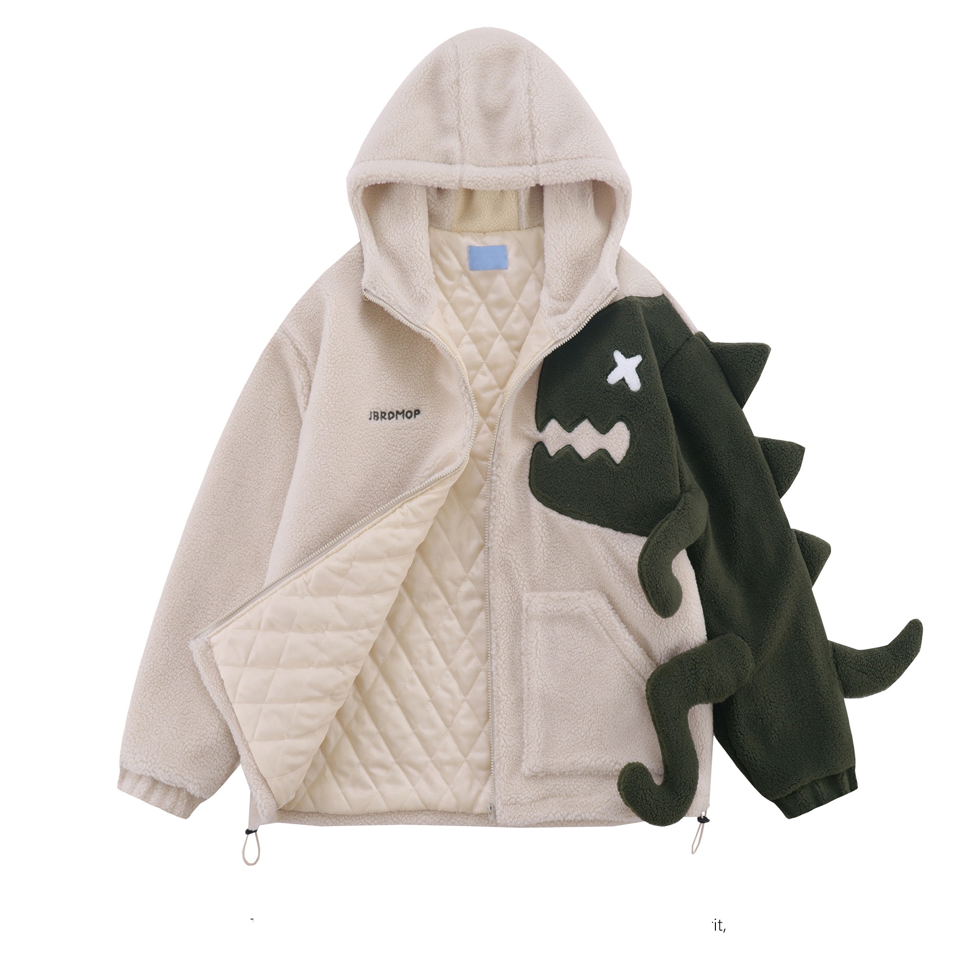 Design Sense Dinosaur Spliced Lamb Wool Coat Female