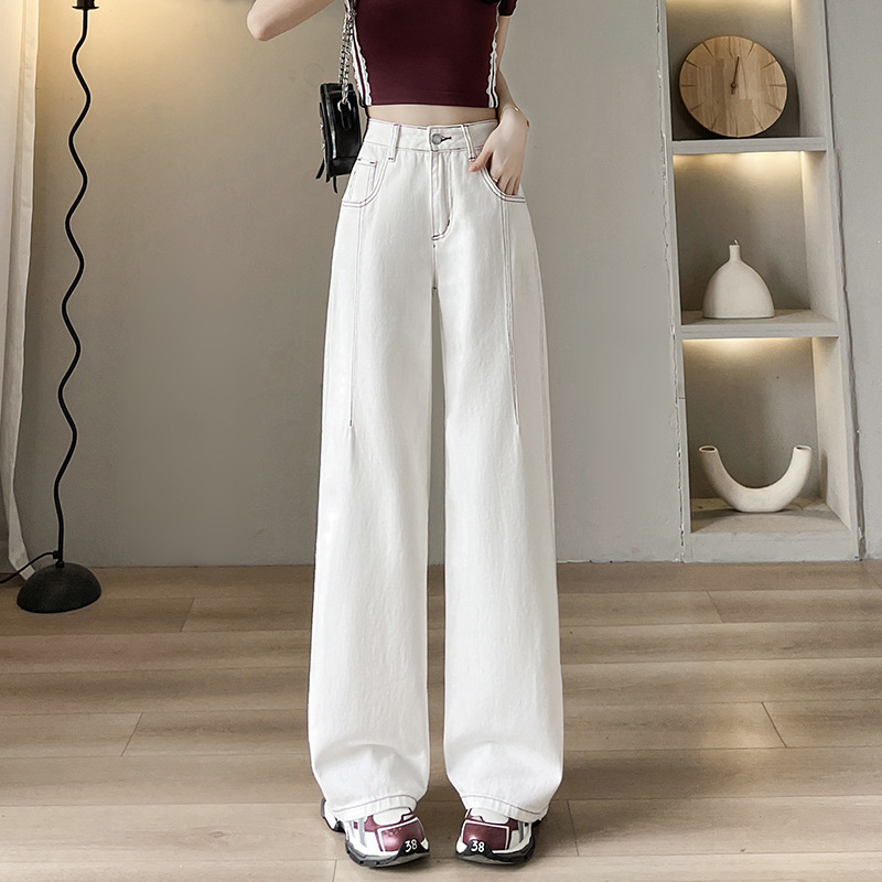Design Sense High Waist Loose Wide Legs Jeans White Tall