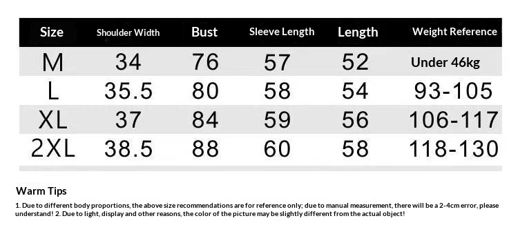 1. Asian sizes are 1 to 2 sizes smaller than European and American people. Choose the larger size if your size between two sizes. Please allow 2-3cm differences due to manual measurement. 2. Please check the size chart carefully before you buy the item, if you don't know how to choose size, please contact our customer service. 3.As you know, the different computers display colors differently, the color of the actual item may vary slightly from the following images.