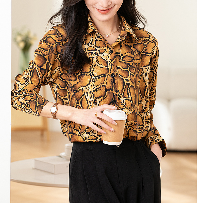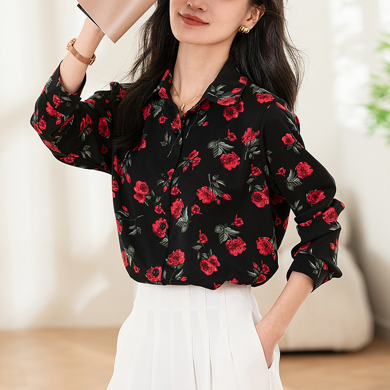 Design Sense Niche Long Sleeve Non-ironing Draping Vertical And Smooth Printed Top Shirt