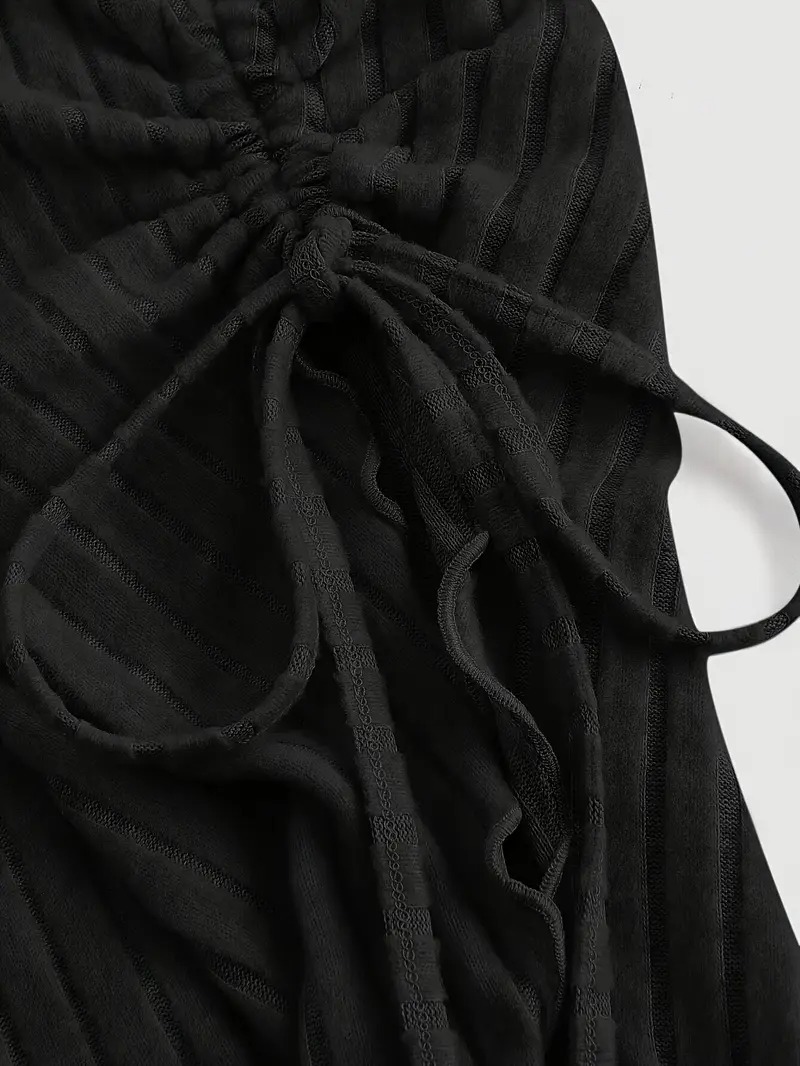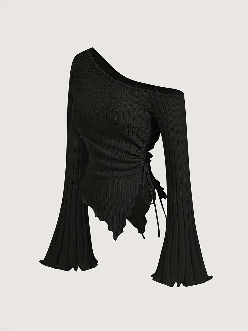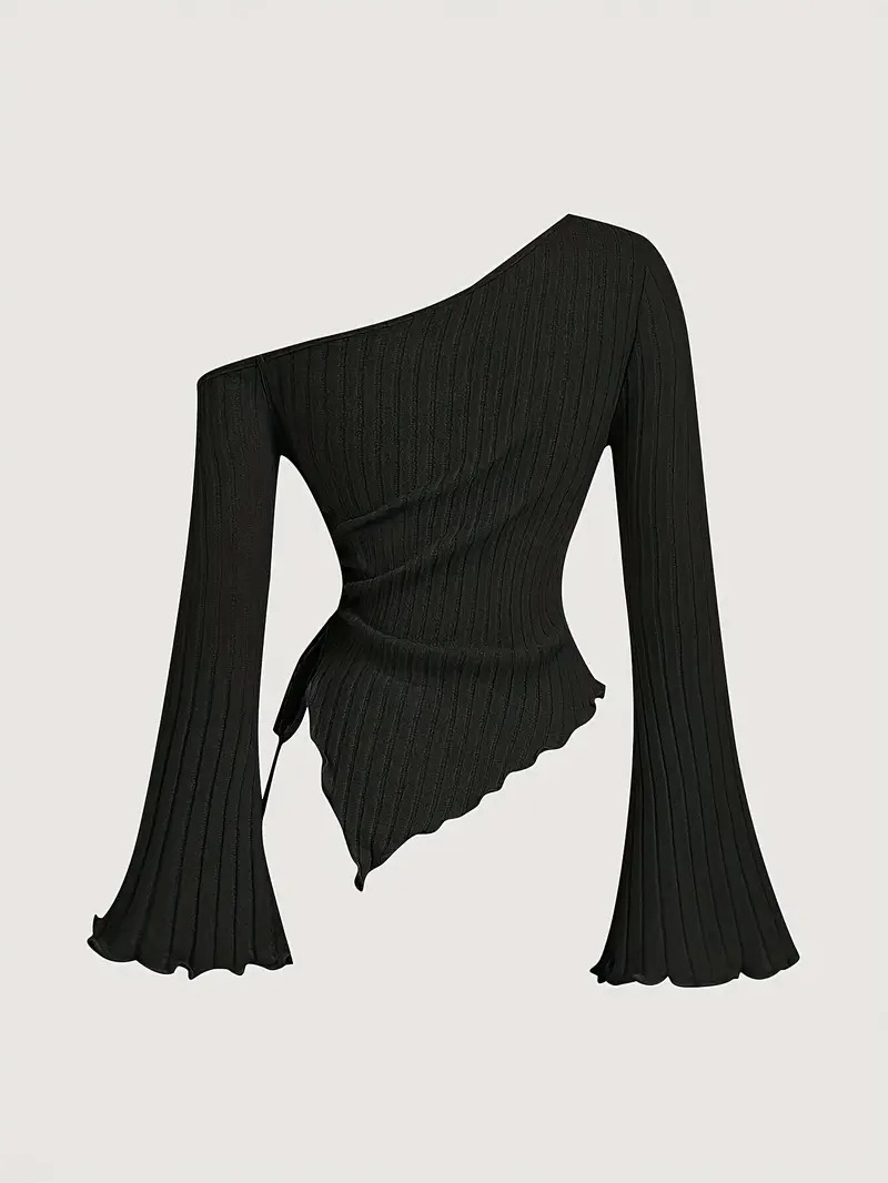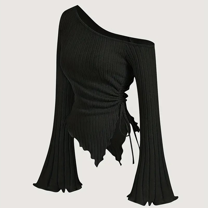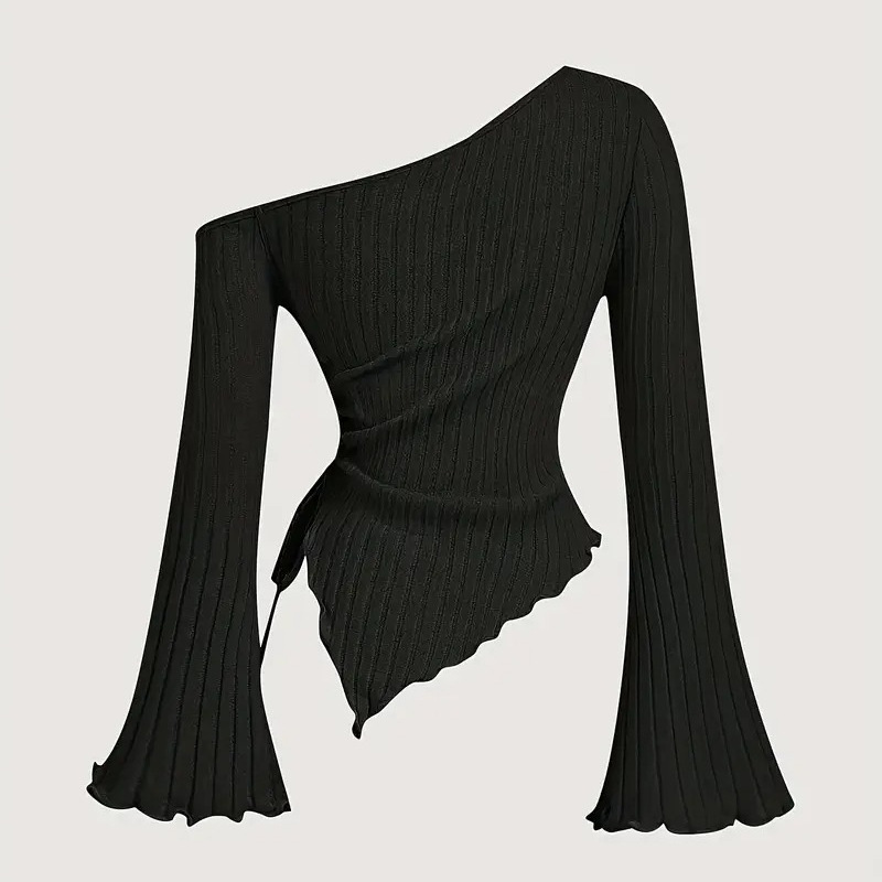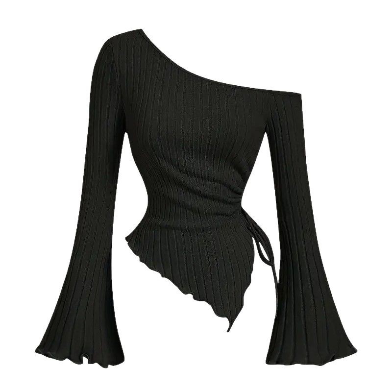 Design Sense Off-neck Long Sleeve Slim-fitting Simple Rope T-shirt