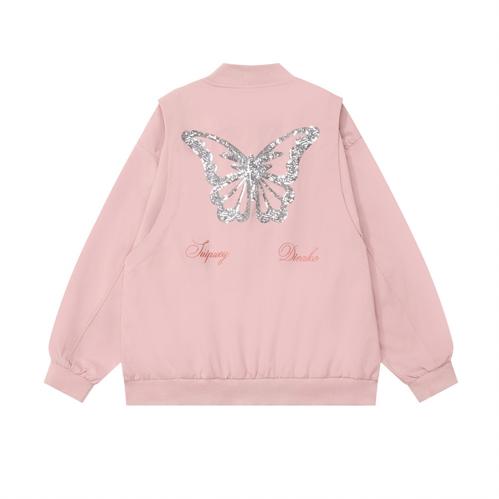 Design Sequined Embroidered Butterfly Baggy Coat Baseball Uniform
