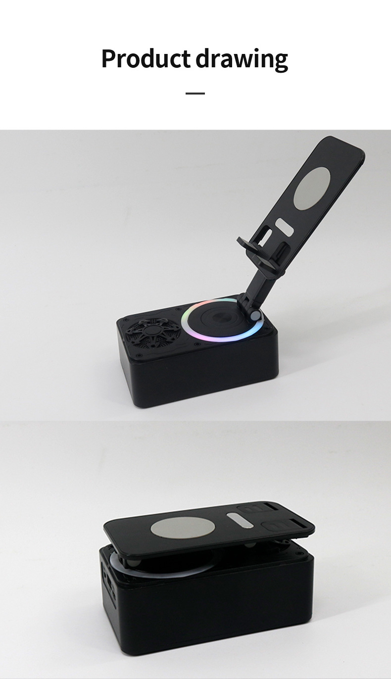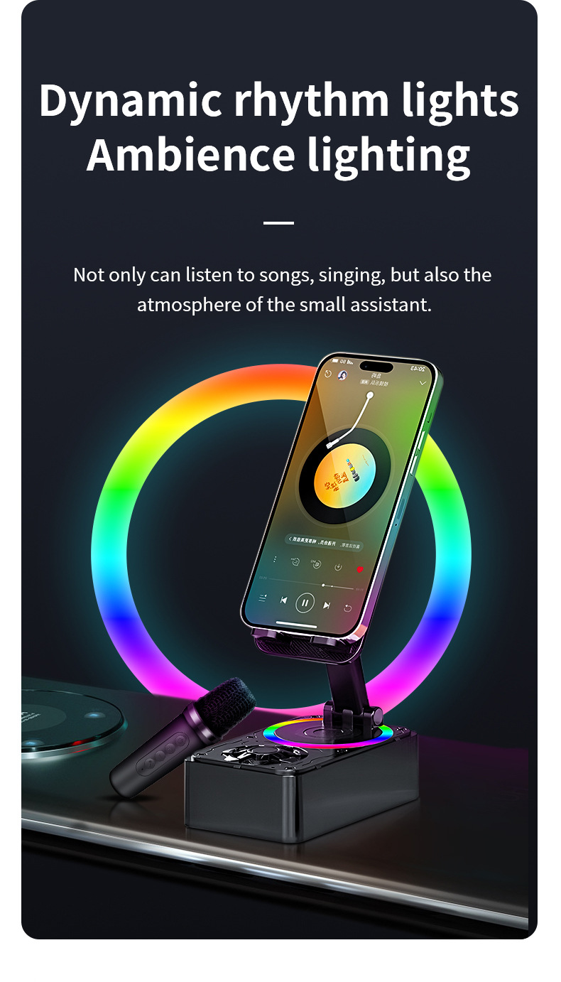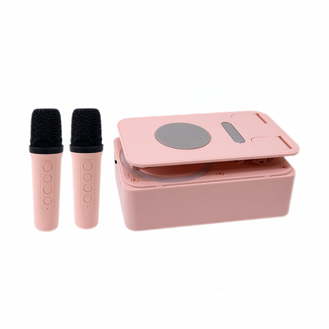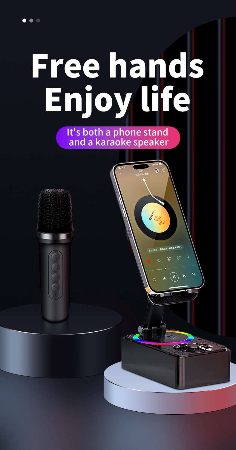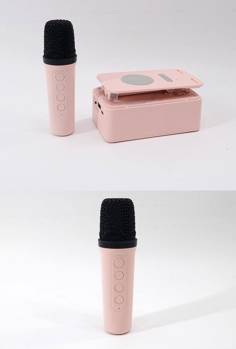Colors: K18 phone stand speaker with single speaker in black, K18 phone stand speaker with dual speakers in black, K18 phone stand speaker with single speaker in pink, K18 phone stand speaker with dual speakers in pink.