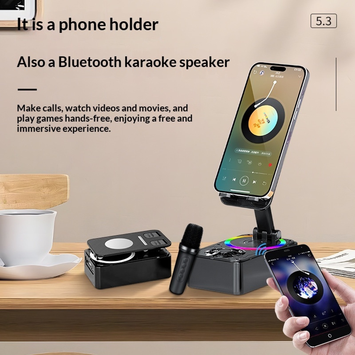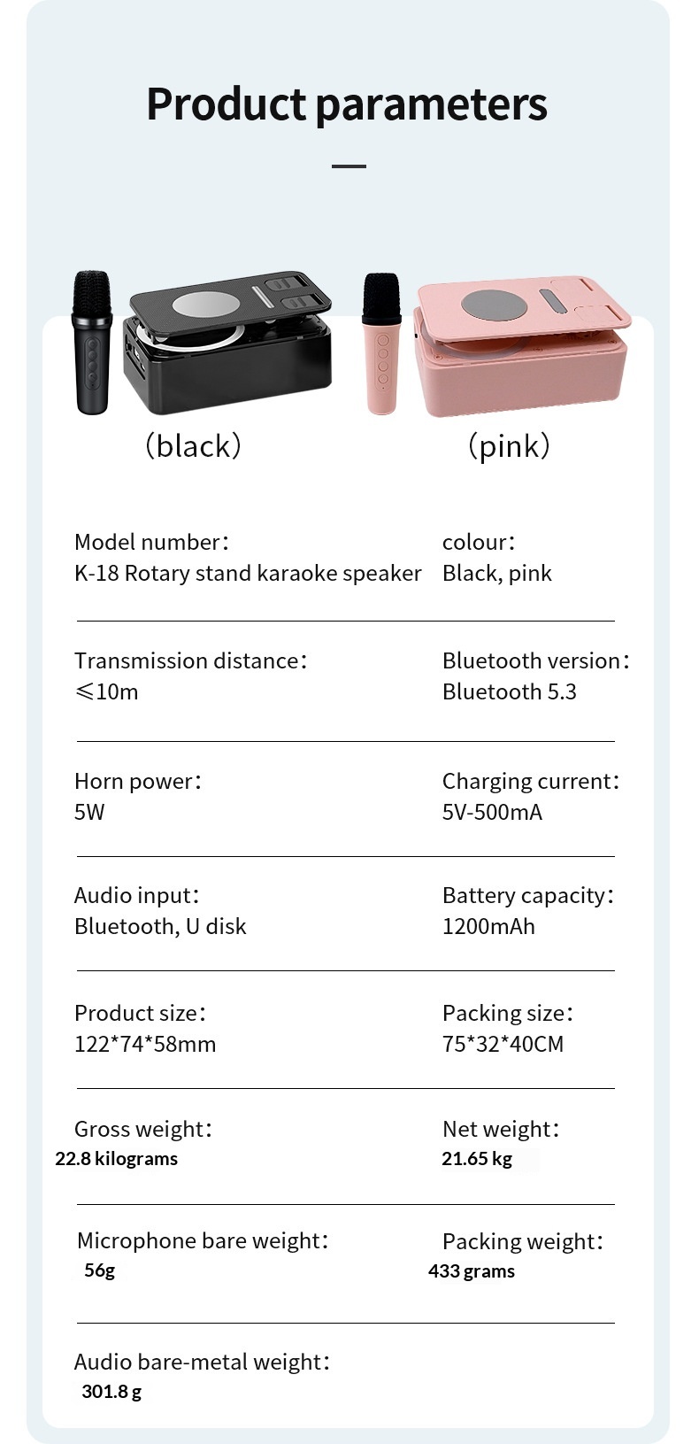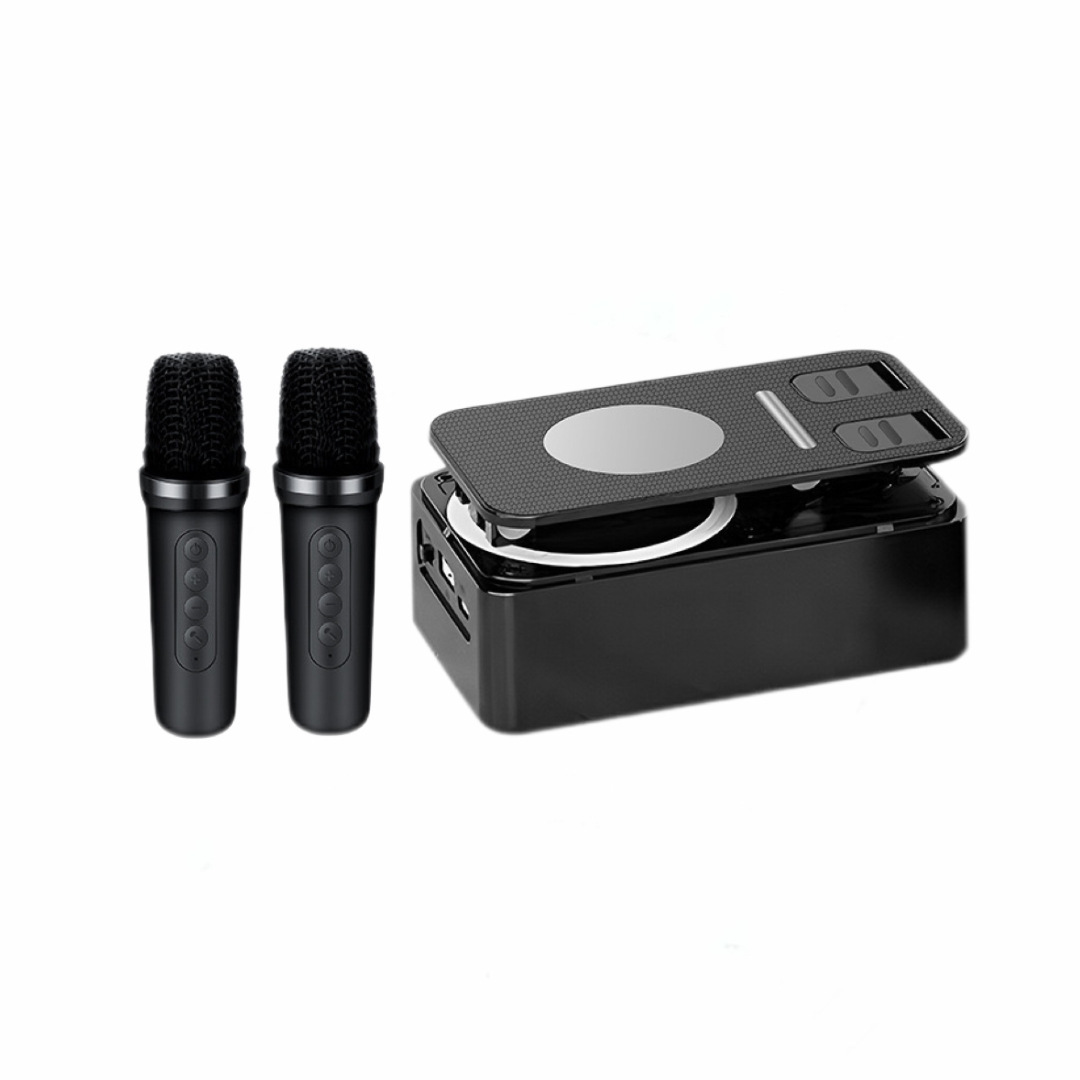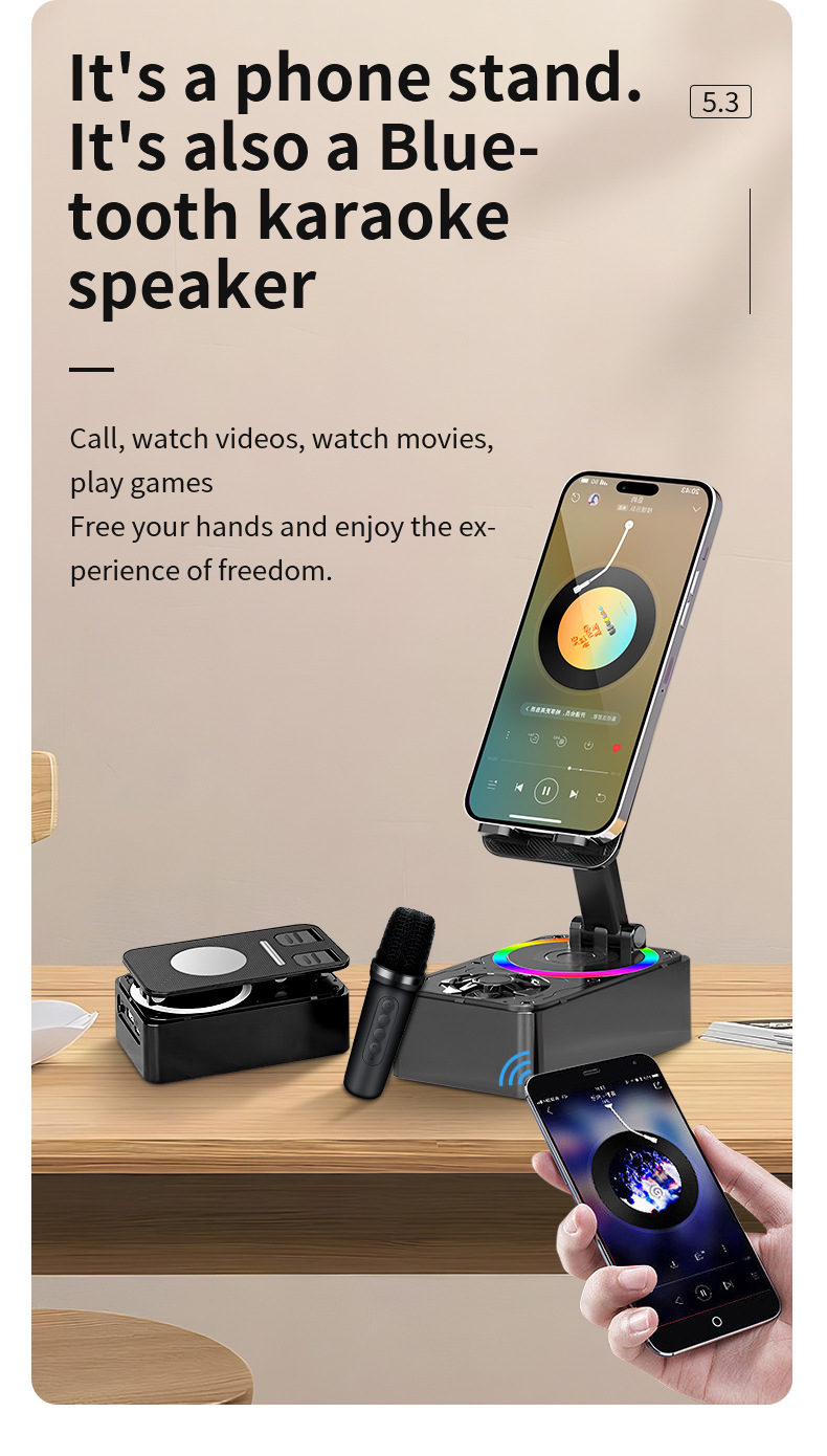 Colors: K18 phone stand speaker with single speaker in black, K18 phone stand speaker with dual speakers in black, K18 phone stand speaker with single speaker in pink, K18 phone stand speaker with dual speakers in pink.