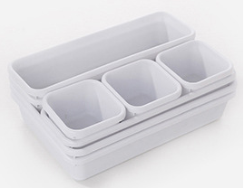 Product features: compartments, superposition, no cover