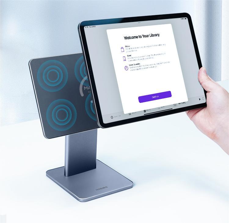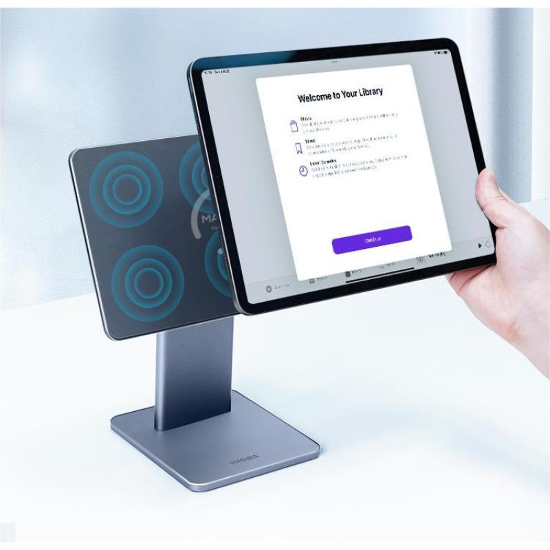 This foldable desktop iPad stand has two hinges, the upper shaft adjusts the angle make you easily adjustable for vertical and horizontal modes, the lower shaft can be adjusted angle steplessly. You can easy match the best eye-level, so that you can keep a comfortable posture when Painting, Taking notes, playing game, watching cooking videos/photos.
