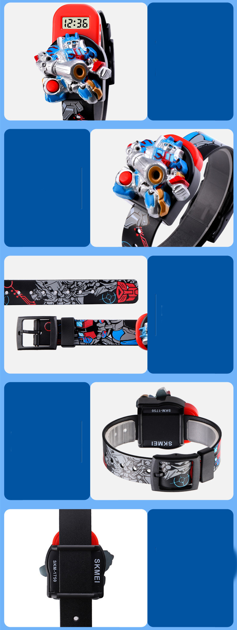 Material: plastic case, PVC strap, resin mirror, plastic bottom cover, PC buckle
