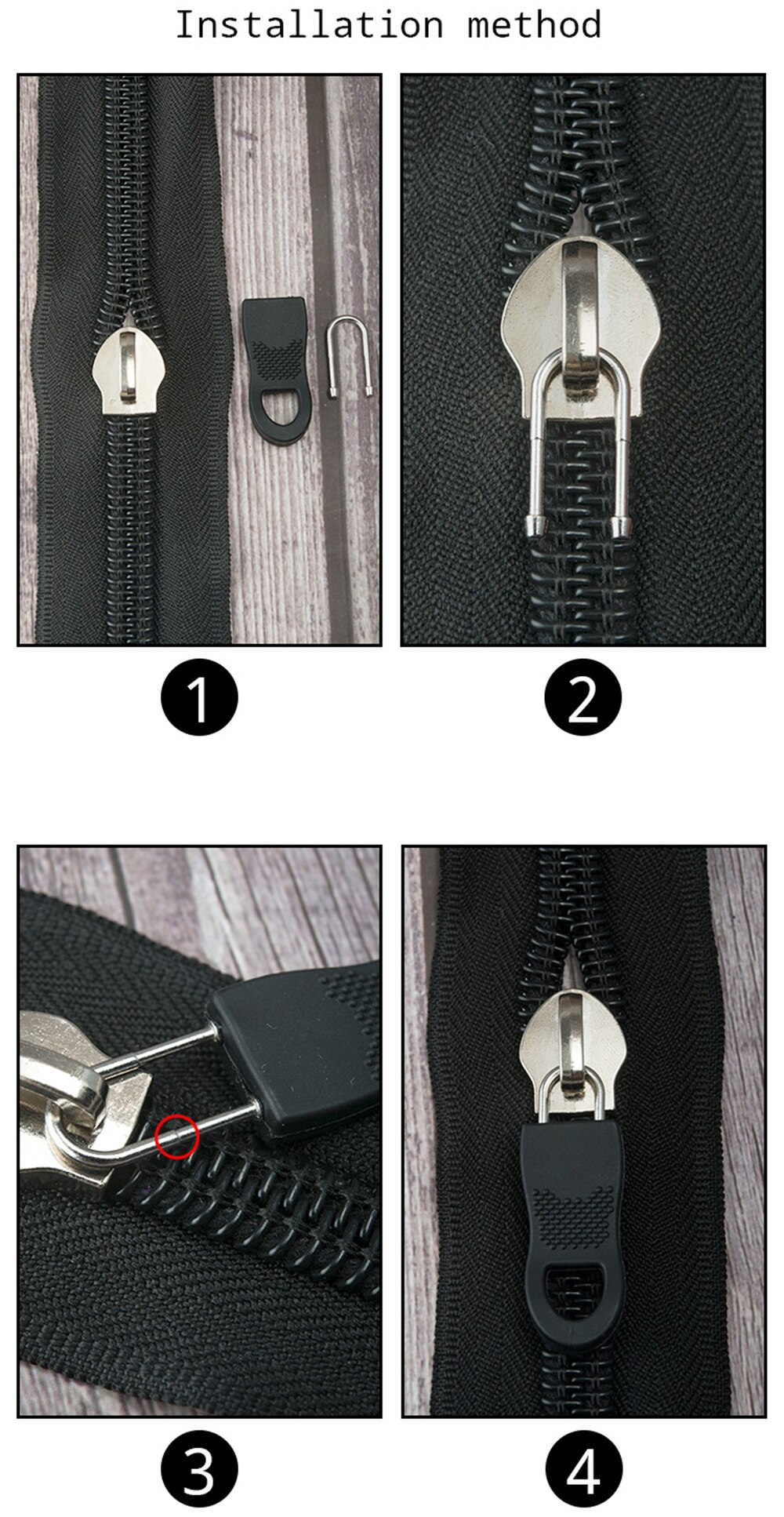 The zipper can be easily installed in a few seconds without using tools.