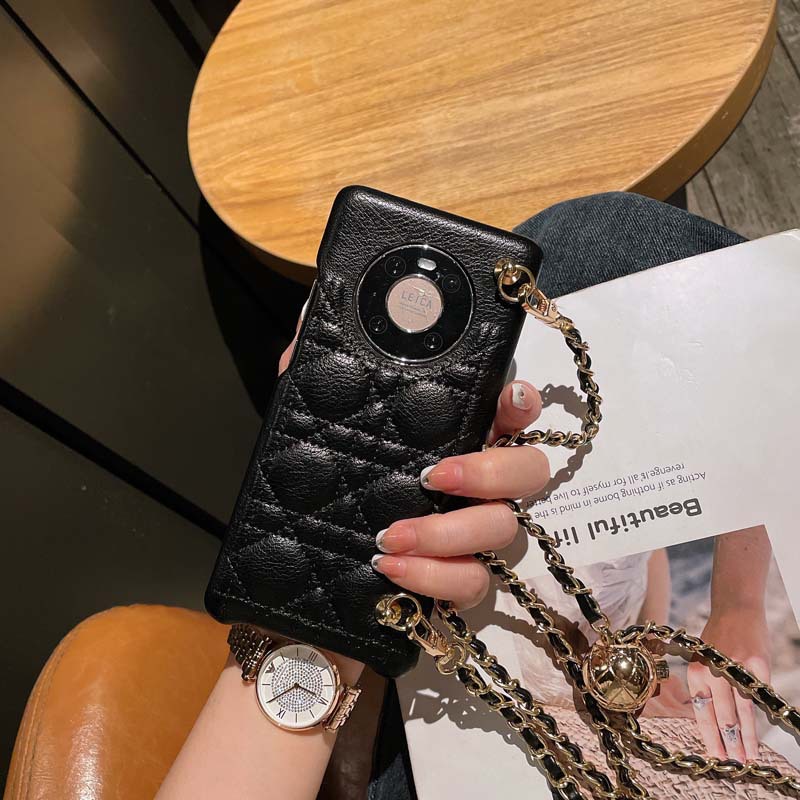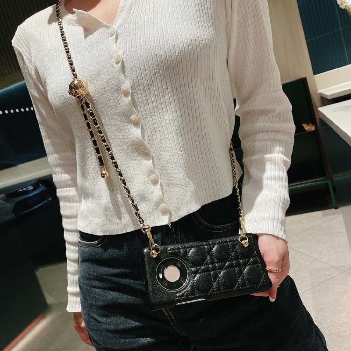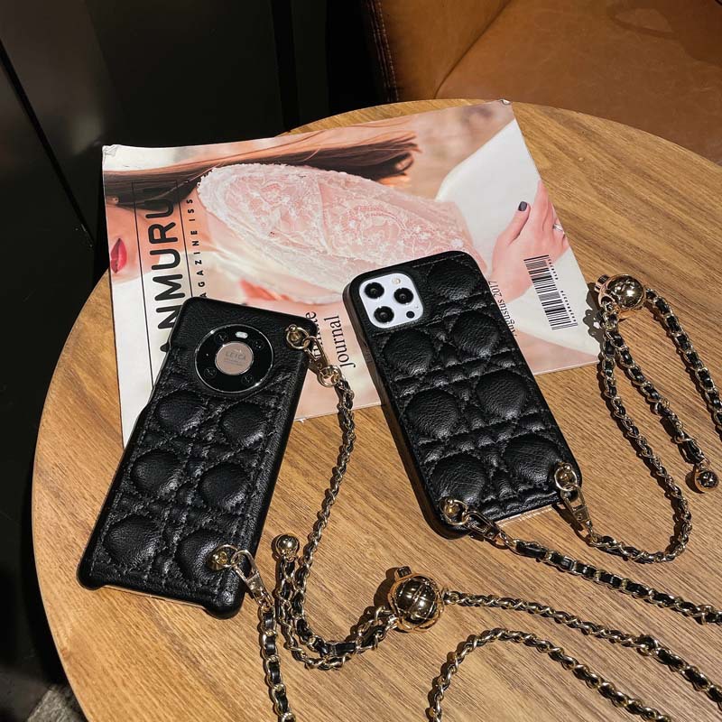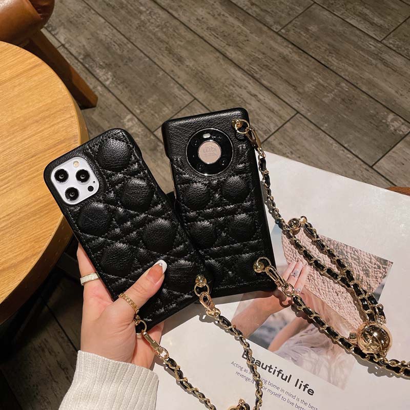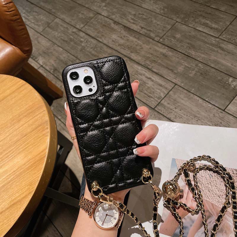 Diagonal Small Golden Ball Phone Case Rhomboid Leather