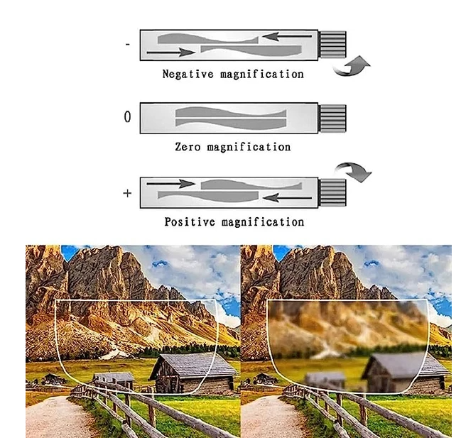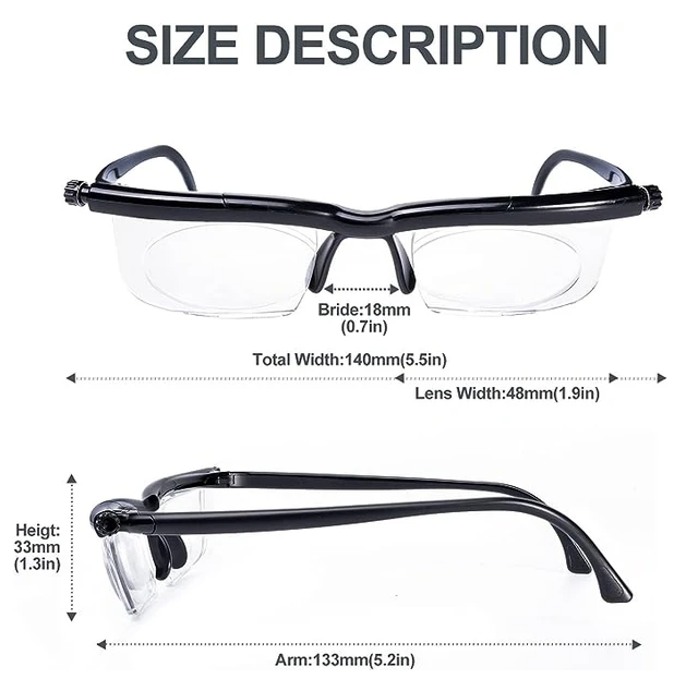 • Comes with: 1 x Pair of Self-Adjusting Lens Adaptive Glasses, 1 x Microfiber Cleaning Cloth, 1 x Case, 1 x Eye Chart For Easy Adjusting, 1 x Instruction Manual