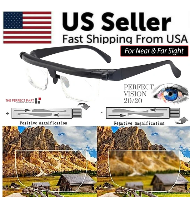 Dial Adjustable Glasses Variable Focus For Reading Distance Vision Eyeglasses US