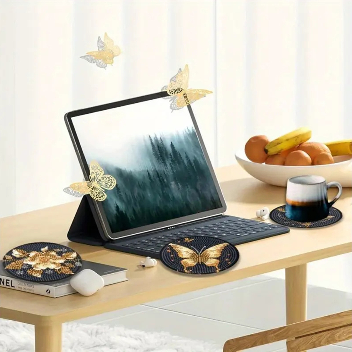 Diamond Art Drawing Coaster With Bracket, DIY Butterfly Pattern Diamond Art Coaster, Suitable For Adults And Beginners Diamond Drawing Kit, Diamond Kit Craft Supplies, Exquisite Gifts For Friends