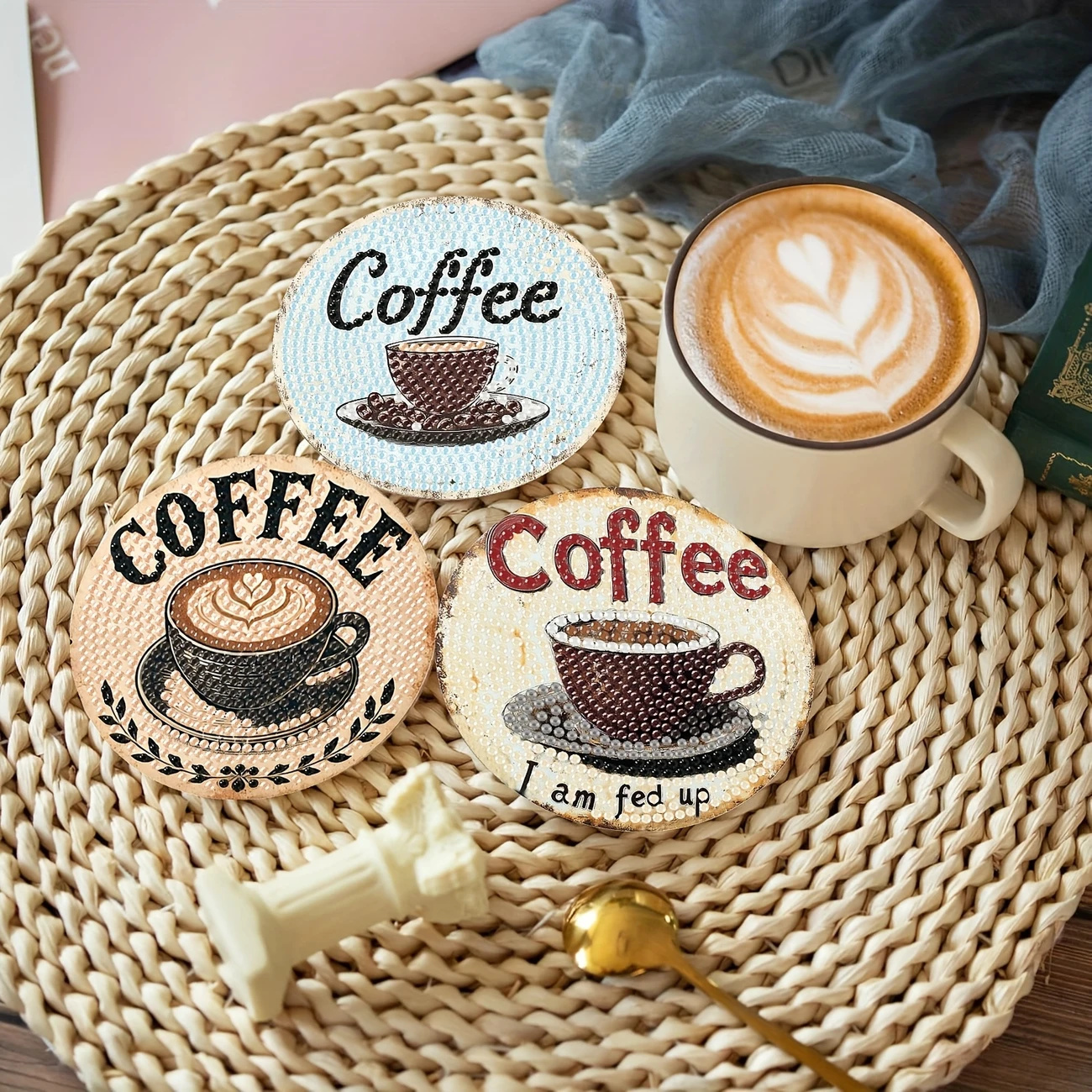Diamond Art Drawing Coaster With Bracket, DIY Coffee Pattern Diamond Art Coaster, Suitable For Adults And Beginners Diamond Drawing Kit, Diamond Kit Craft Supplies, Exquisite Gifts For Friends