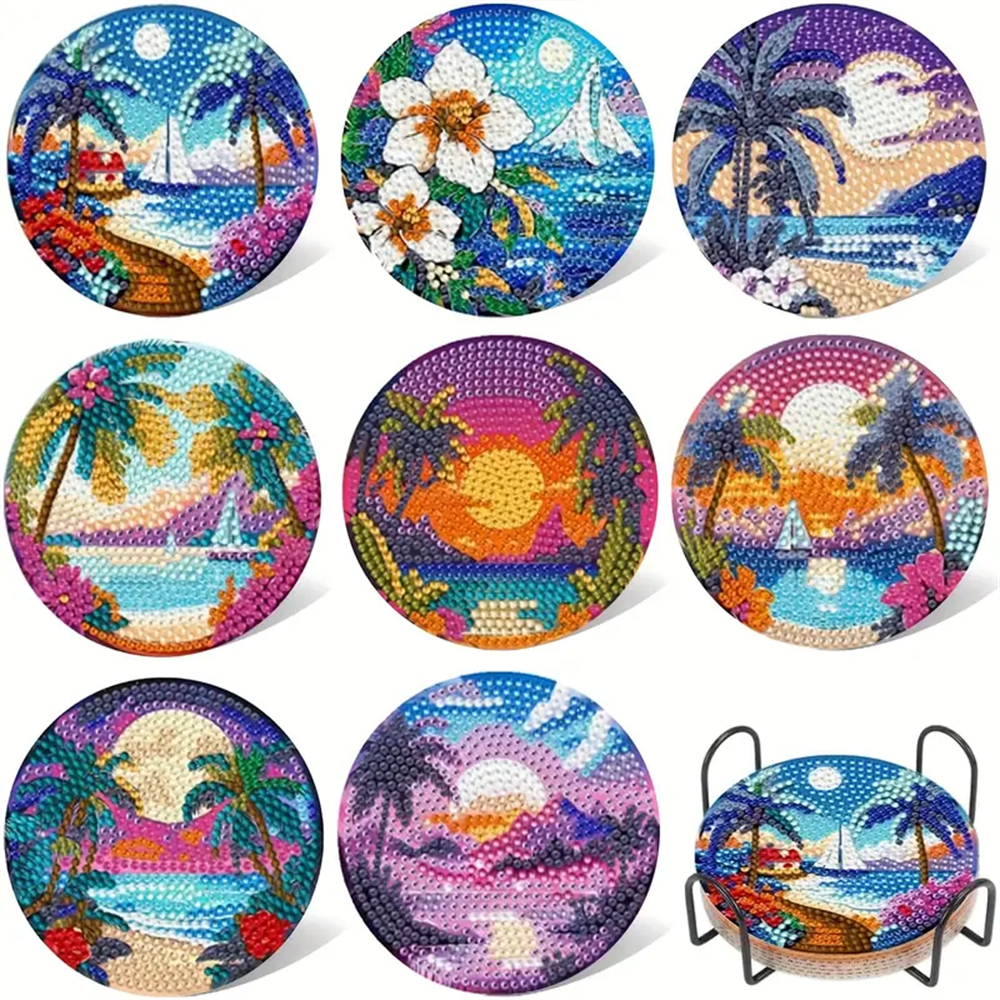 Diamond Art Drawing Coaster With Bracket, DIY Landscape Pattern Diamond Art Coaster, Suitable For Adults And Beginners Diamond Drawing Kit, Diamond Kit Craft Supplies, Exquisite Gifts For Friends