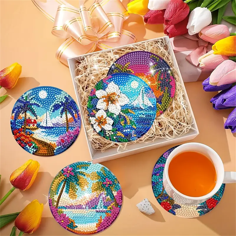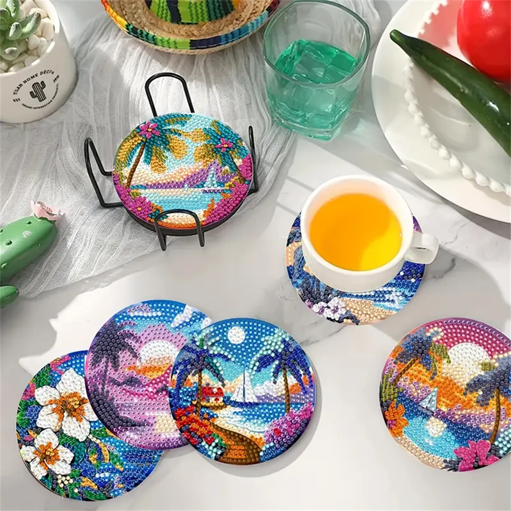Diamond Painting Coaster Kits with Holder, Suitable for Adults&Beginners, for DIY Drink Coaster, Home Decoration and Great Gifts