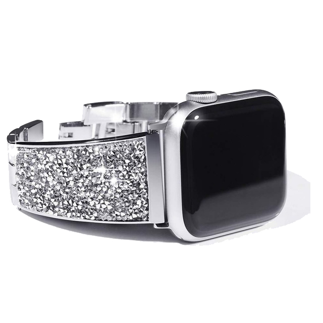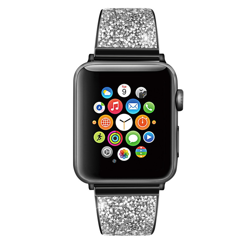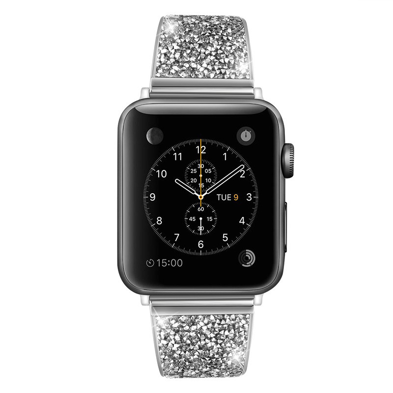 Three. elegant thin band set with street. Just enough bling to make it very fashionable. Makes her iwatch tape look like jewelry. A nice option to wear the apple watch with their clothes. Brings her many compliments
