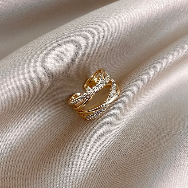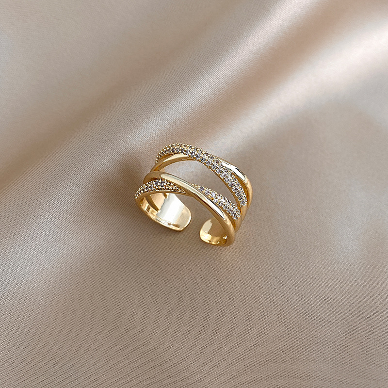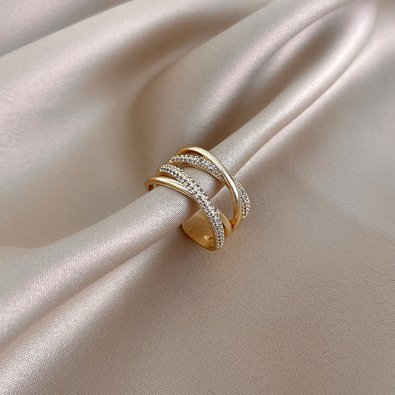 Color: gold diamond double cross open ring