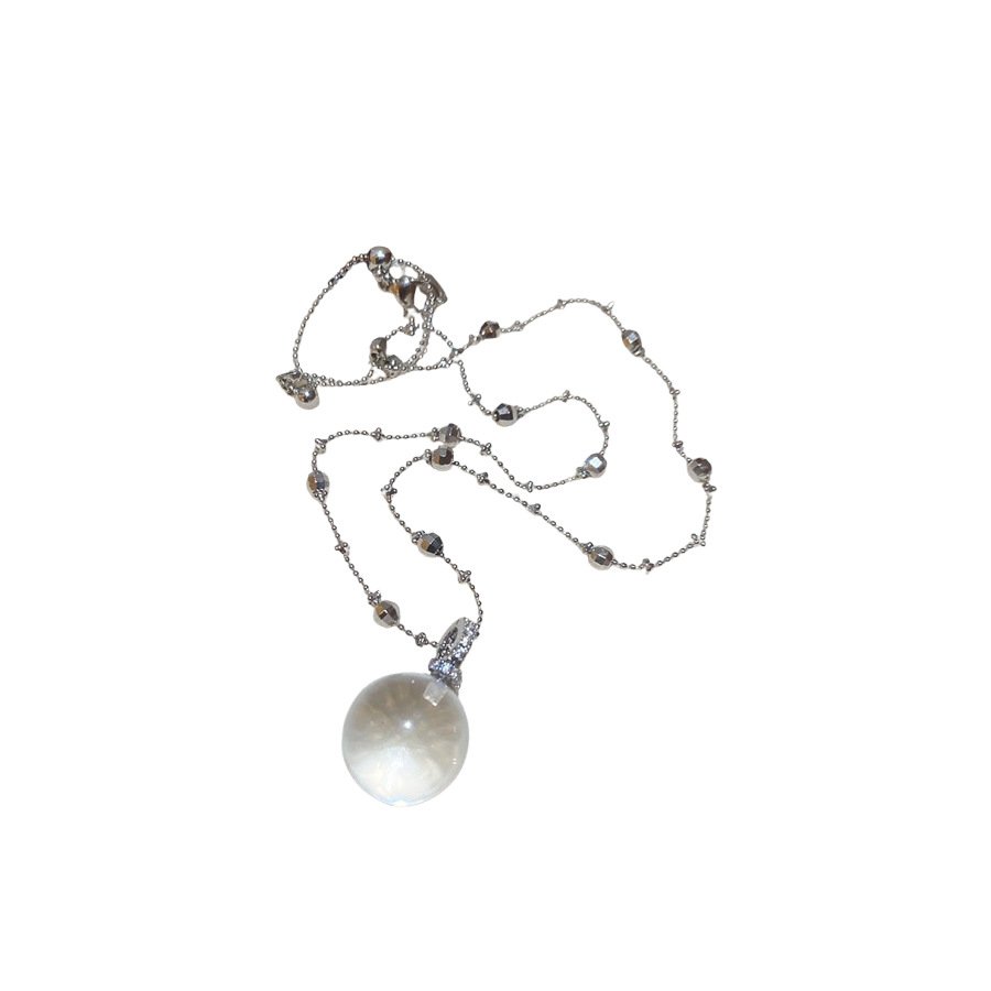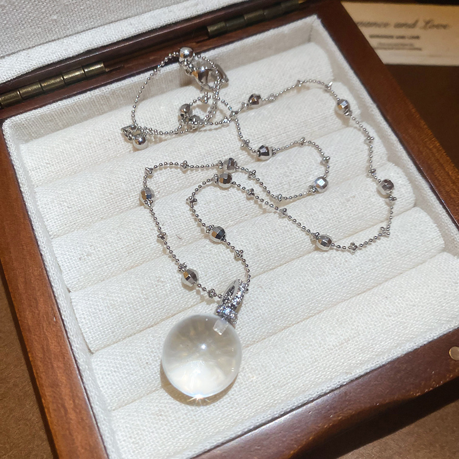 Diamond-embedded Heart Geometric Round Pendant Crystal Necklace