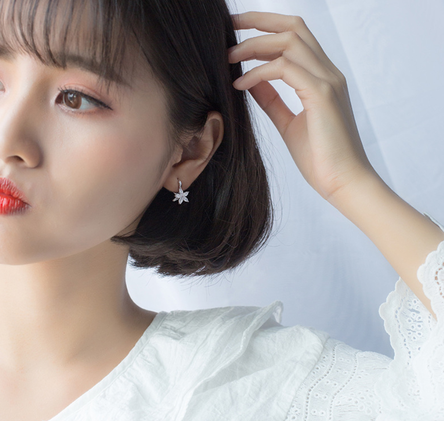 Material: SilverThe ear buckle is about 1.8CM high and the flower width is about 0.6CM.