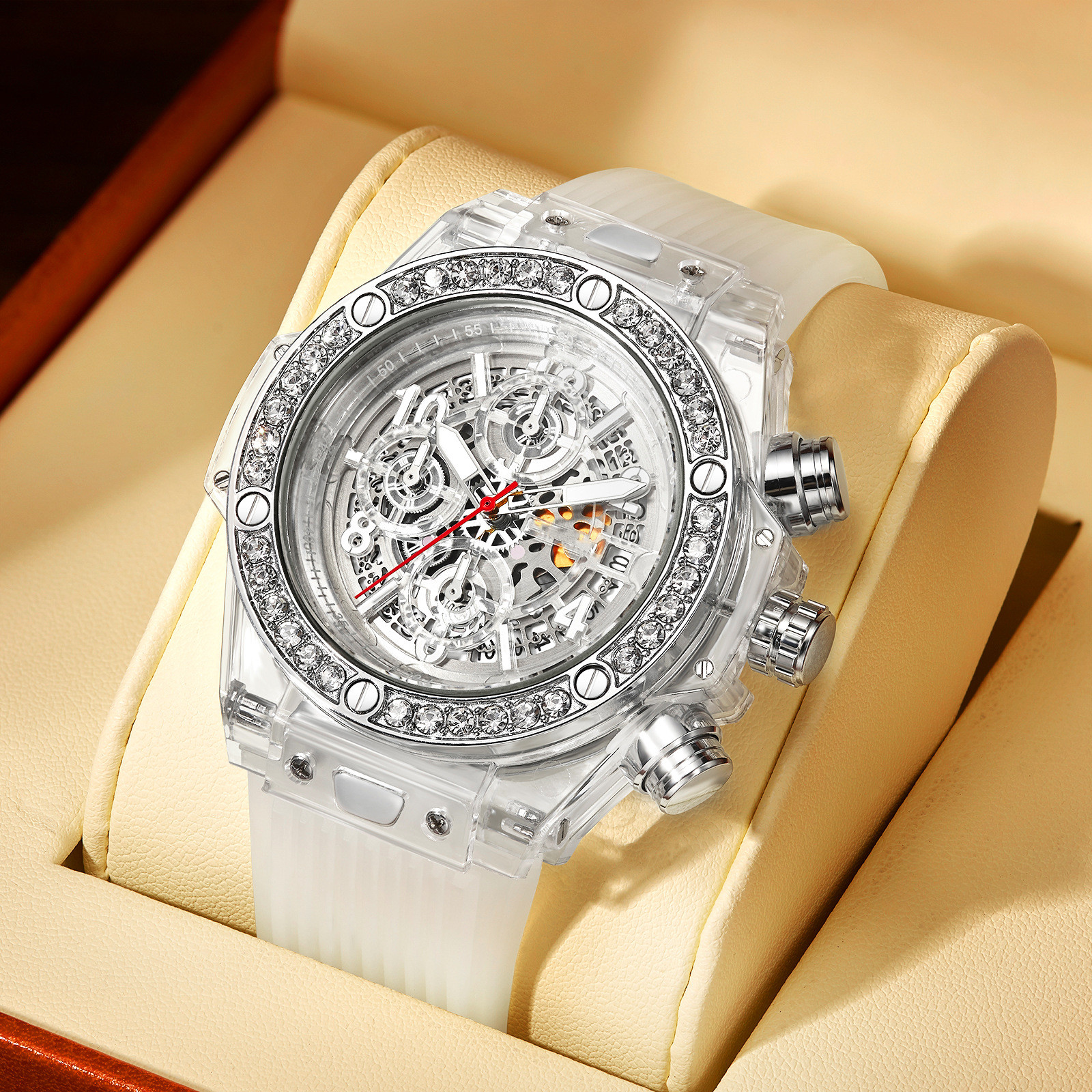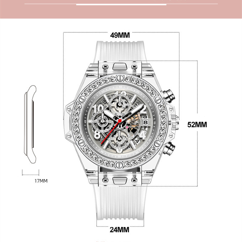 Diamond Inlaid Transparent Quartz Watch Waterproof